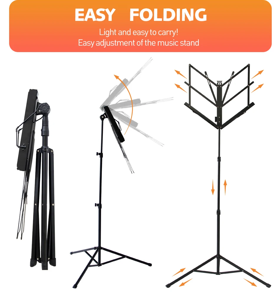 Легкий стиль и портативность: съемная книжная тарелка и складная подставка для штатива обеспечивают превосходную портативность, сборка ножек штатива регулируется на узкие места и складывается на плоской подошве для хранения, полностью свернутый Размер подставки составляет всего 17,7 ''/45 см для более удобного хранения. Посылка весом 2.2 фунта/1 кг поставляется с сумкой для переноски. Подходит для школы, оркестров, хоров, церковных групп, классных комнат.