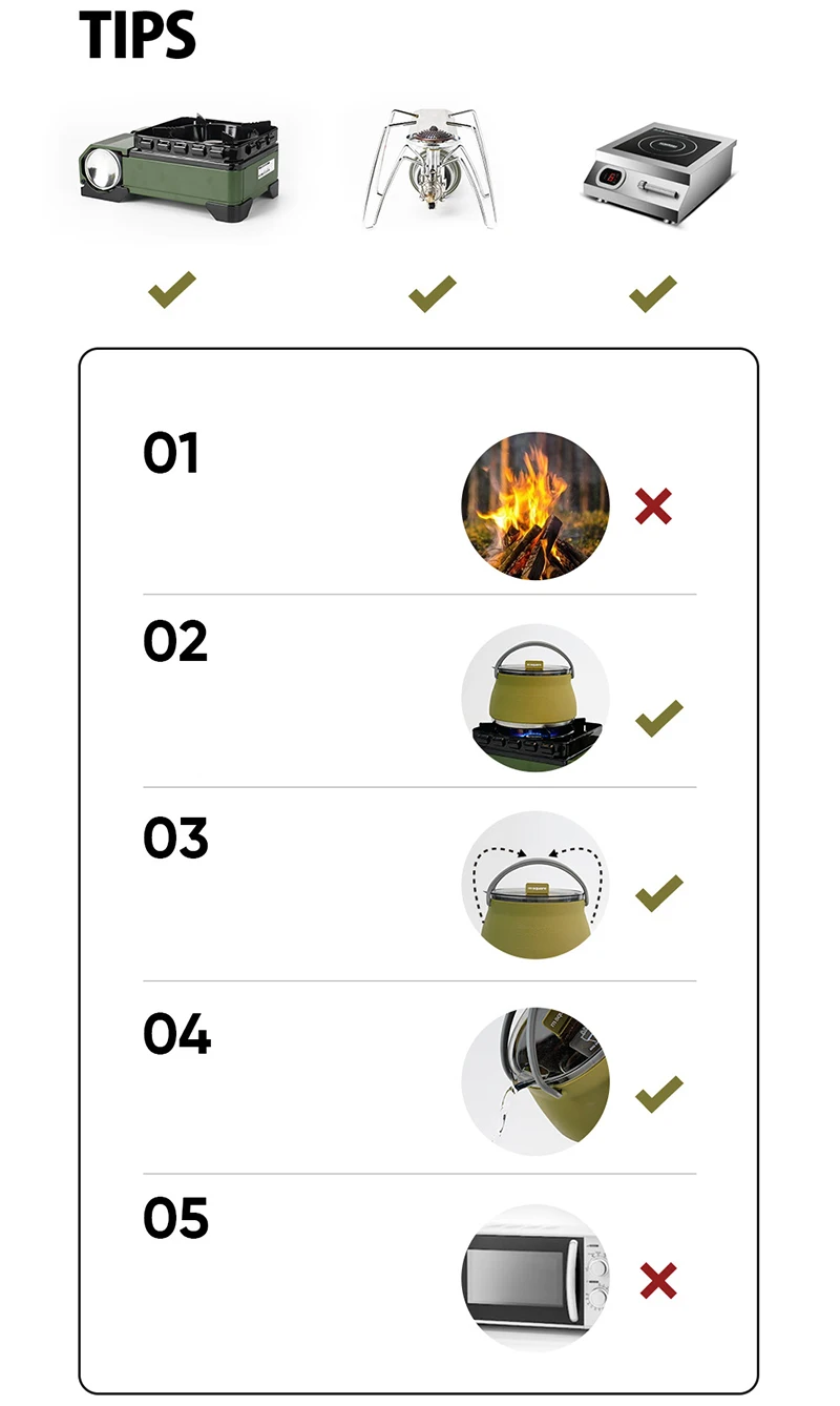 Подходит для различных плит: Напольная газовая плита, плита SOTO, индукционная плита.