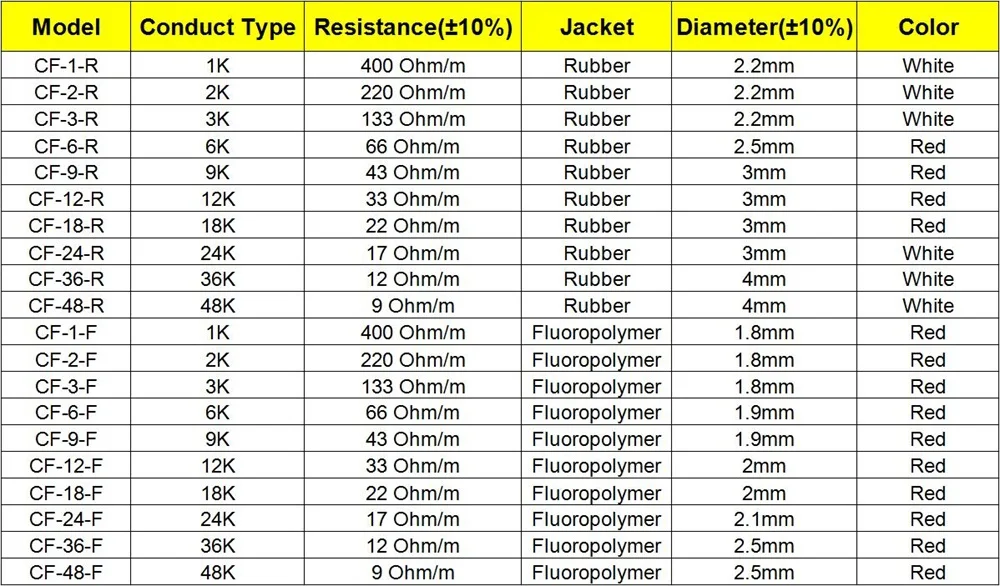 1K 2K 3K 6K 9K 12K 18K 24K нагревательный кабель из углеродного волокна