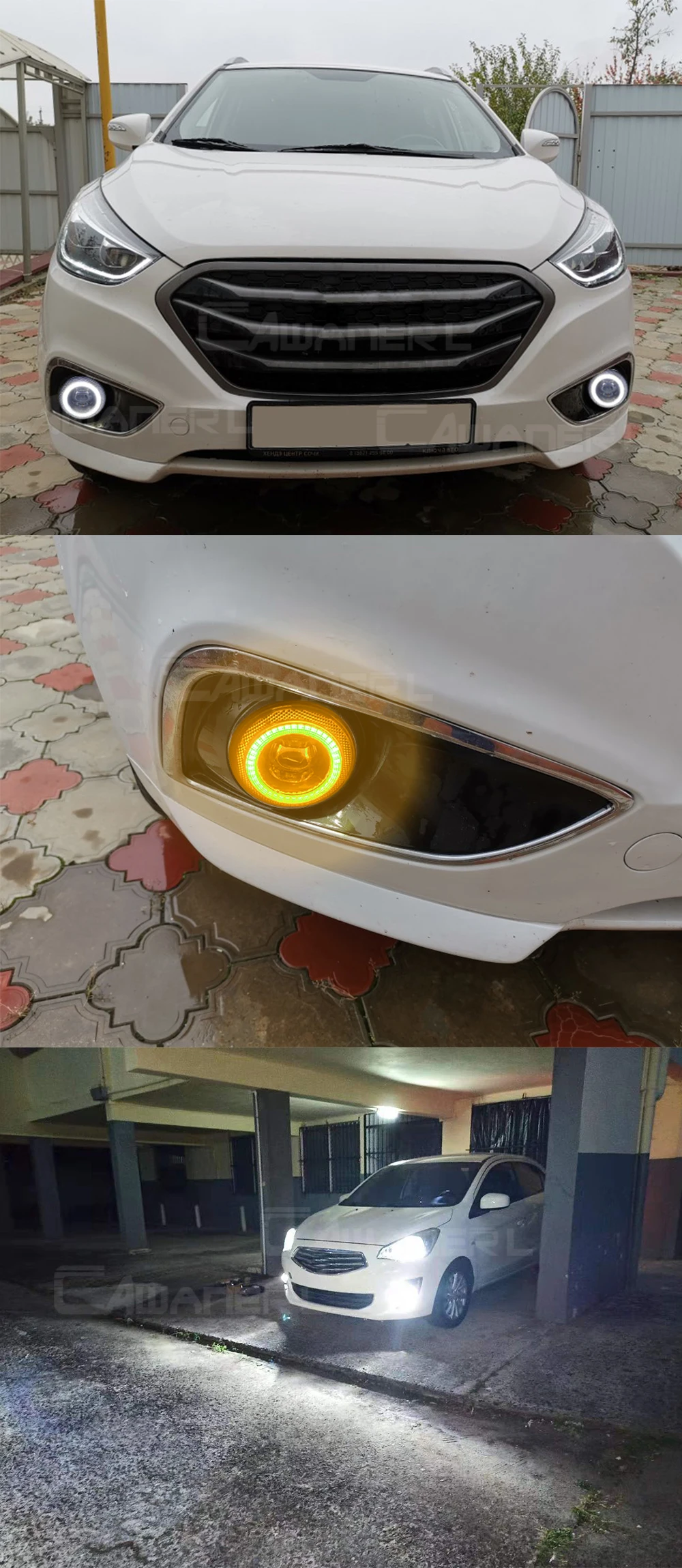 -Яркость: противотуманный светильник (8000лм/комплект, 4000лм/лампа); Angel Eye (1000ЛМ/комплект, 500лм/лампа);