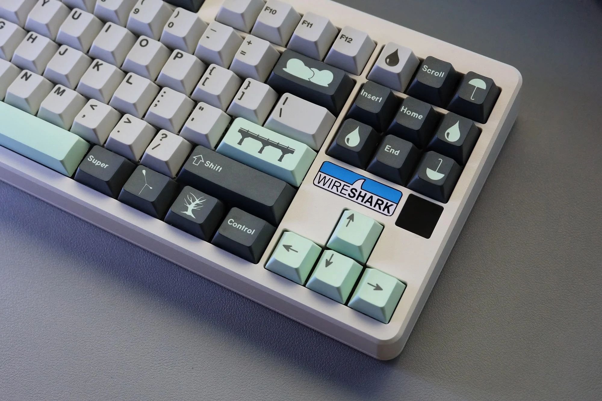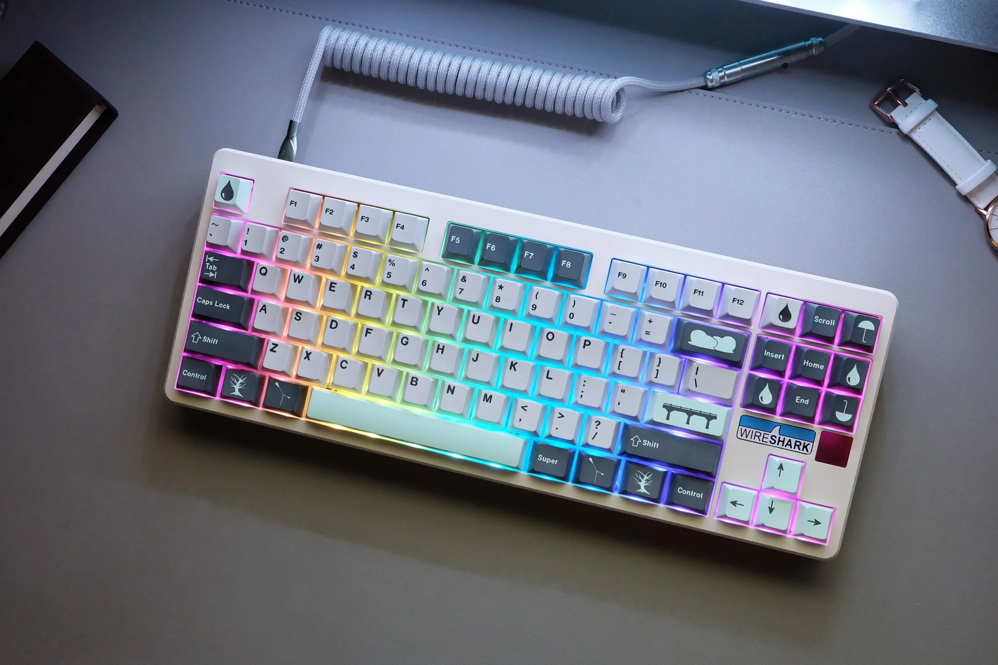 Всего 140 клавиш, включает в себя 1.75U, 2U shift, он совместим с 61, 64, 68, 84, 87, 96, 980, 104, 108 и т. д. раскладная механическая клавиатура с MX переключателями