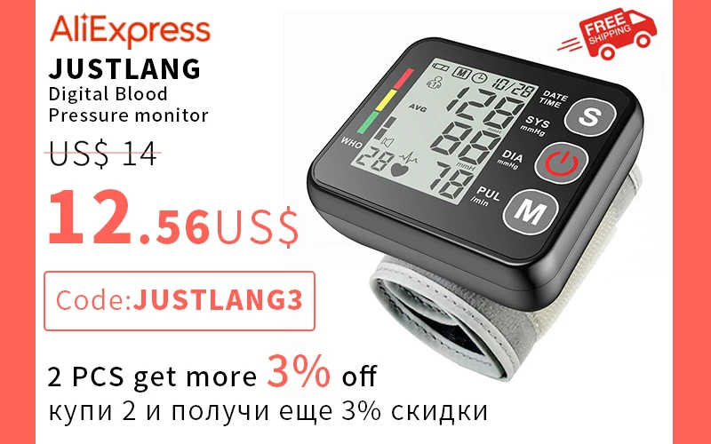 Justlang цифровой монитор артериального давления воспоминания 2*99 показаний, 99 записей для каждого пользователя. Разумно средние за последние 3 измерения обеспечивают точное считывание.