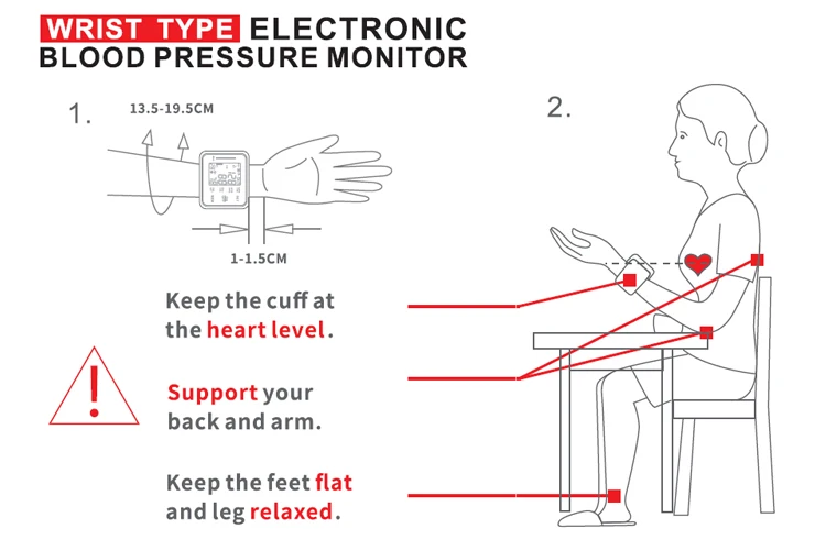 Наиболее распространенной причиной высоких показаний при использовании монитора артериального давления на запястье является то, что у пользователя нет монитора запястья на уровне сердца. При использовании монитора запястья, пожалуйста, убедитесь, что устройство находится на уровне сердца при чтении. Также обратите внимание, что могут быть фактические различия между вашим кровяным давлением на месте верхней руки и месте запястья.