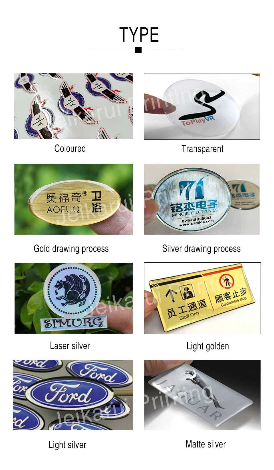 Main: Thick hard waterproof PVC /PC/PTE labels, 3D dome epoxy resin stickers, All kinds of paper stickers