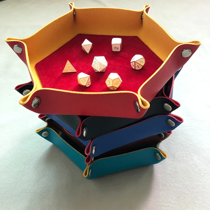 5 цветов коробка для ключей из искусственной кожи шестиугольная Складная Шестигранная складная коробка для кости лоток для игры в РПГ игра DnD хранение в кости