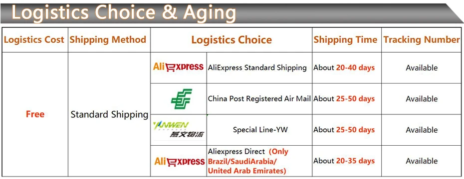 A1: Стандартная покупка, Обычно прибывает в течение 20-40 дней. 【Зависит от новых коронавиров в мире, некоторые страны продлили их прибытие до 30-60 дней 】
