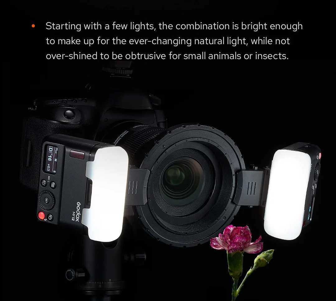 5. Компактный дизайн: макросъемка Godox MF12 оптимизирована для съемки крупным планом Благодаря компактному дизайну и уникальной возможности установки непосредственно на объектив с помощью дополнительного адаптера или размещения вокруг объекта с включенной вспышкой стенд. Кроме того, его размер и беспроводные возможности делают его хорошим вариантом для общей фотографии.