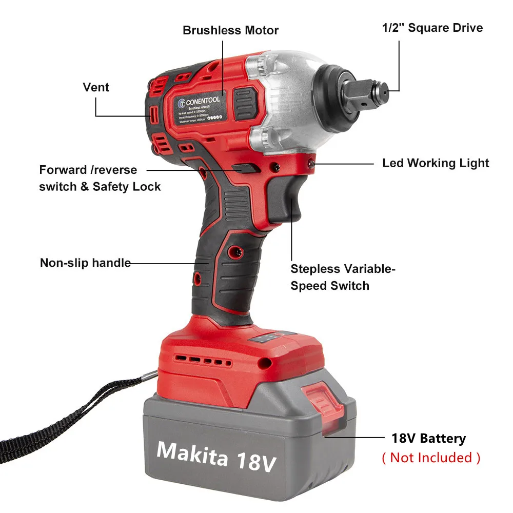 1 х ударный ключ бесщеточный мотор(Без аккумулятора)