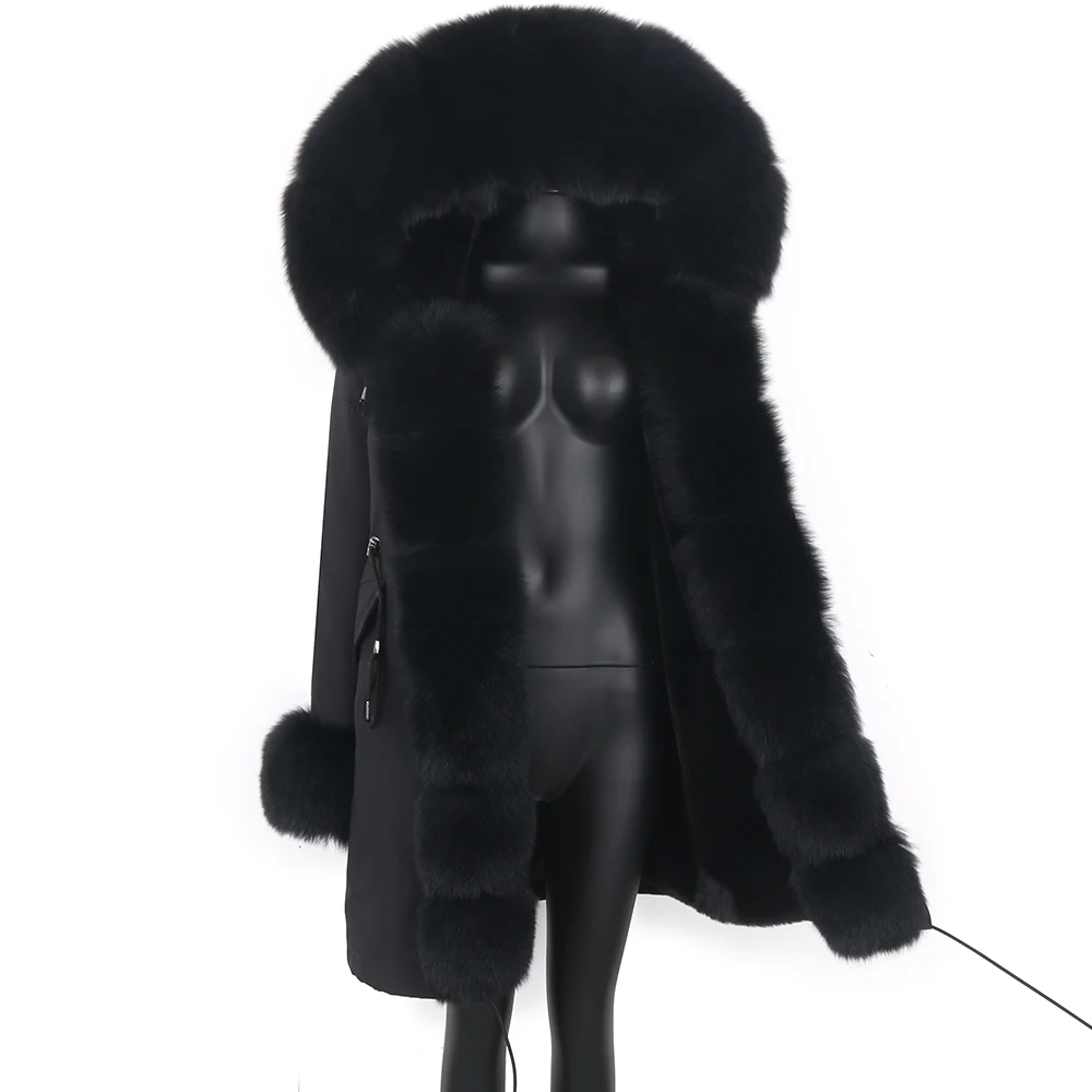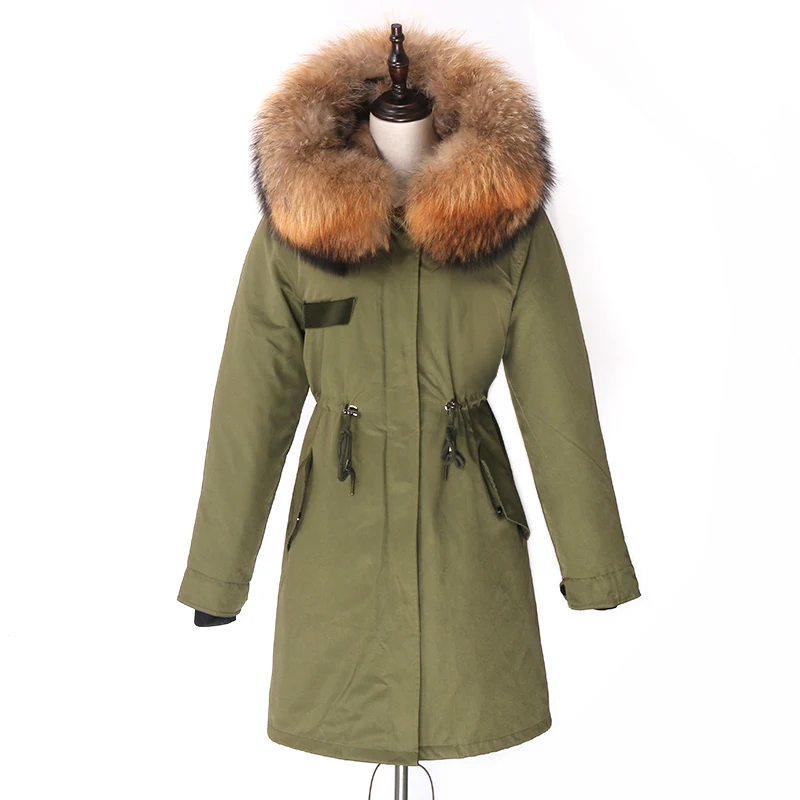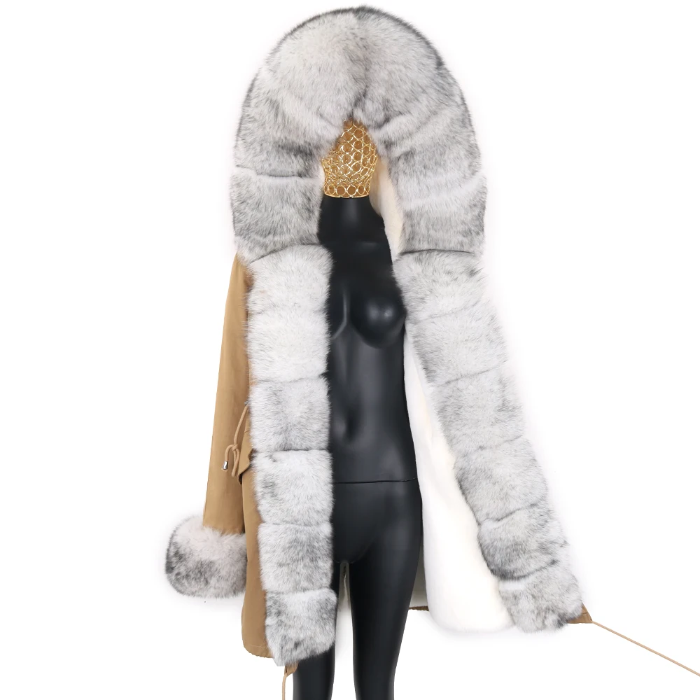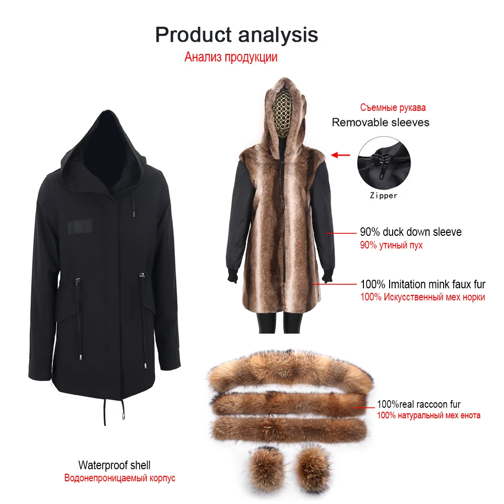 Водонепроницаемая оболочка + хлопковый рукав + жилет из искусственного меха норки + большой воротник из лисьего меха = парка