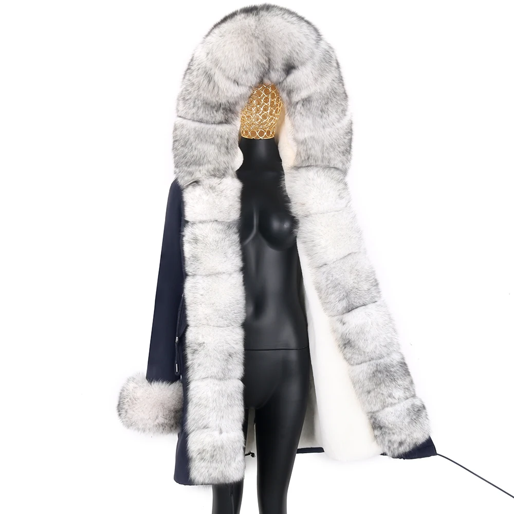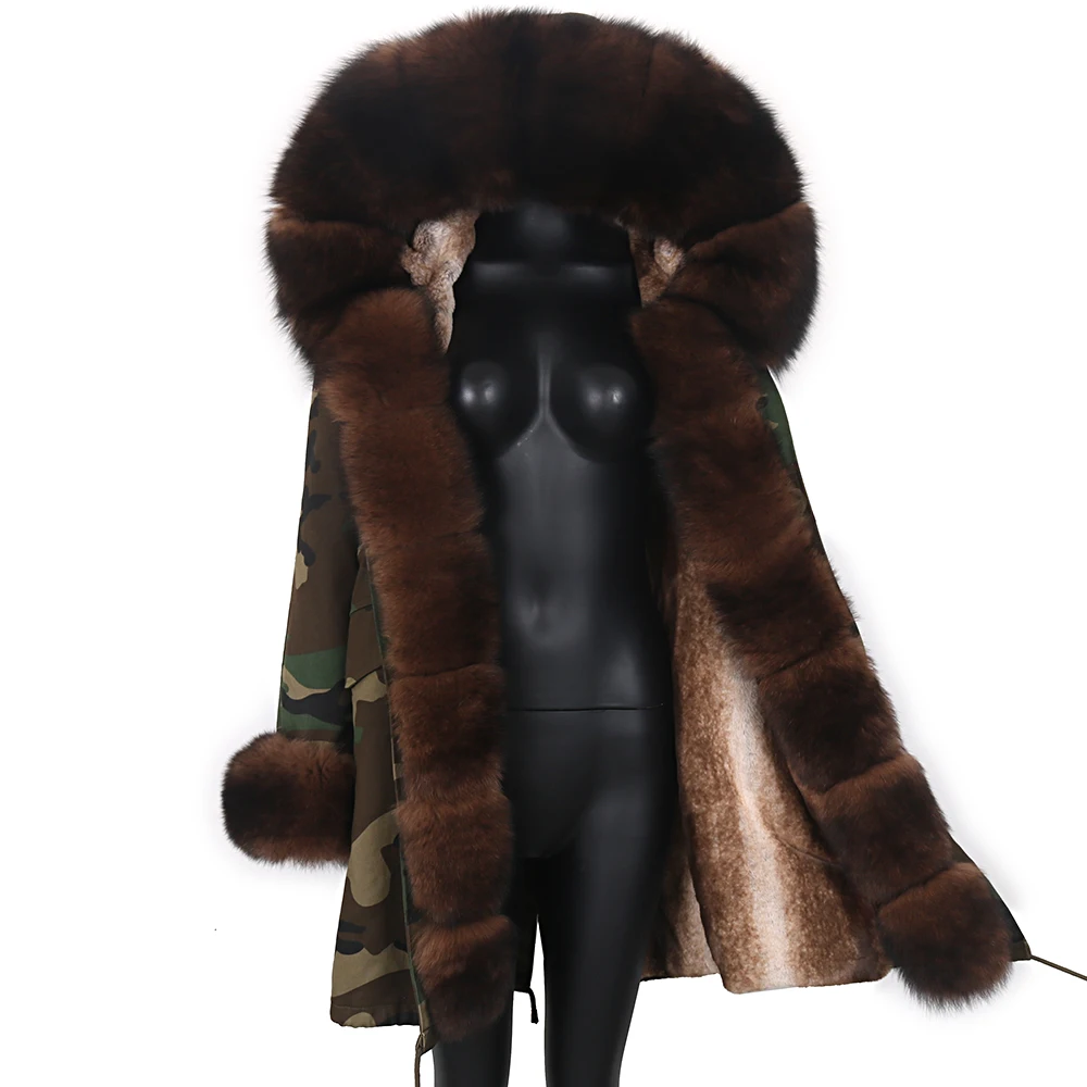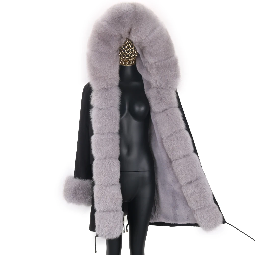 Водонепроницаемая оболочка + хлопковый рукав + жилет из искусственного меха норки + большой воротник из лисьего меха = парка