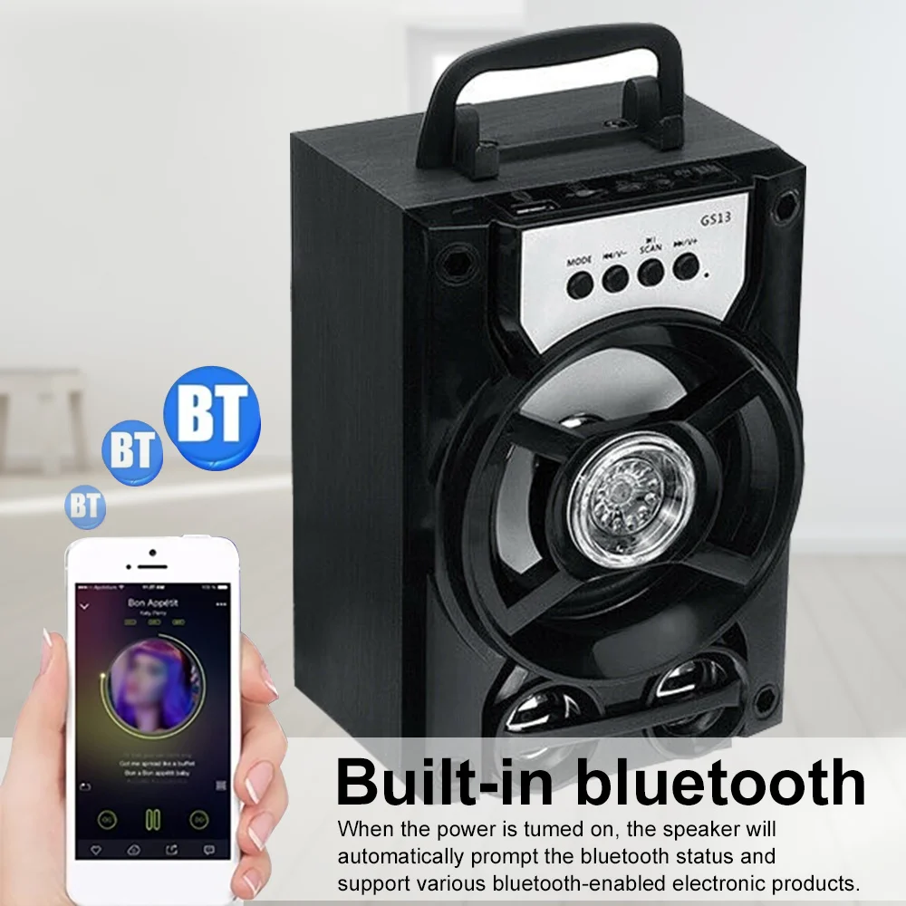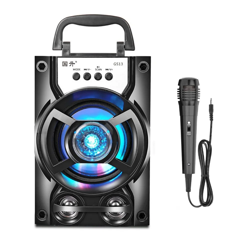 Характеристики:-простая в использовании панель управления для слота для sd-карты-изменение цвета fm-led радио-сабвуфер высокой мощности-легкий и компактный, портативный, вес всего 0,62 кг-охват звука 200 метров-подходит для конференции/магазина/мяча характеристики:-Вес продукта: 0,62 (кг)-Функция: Версия Bluetooth: 5,1-беспроводной диапазон: 10 м-Выход динамика: 5 Вт-Расширенное хранилище: 32 ГБ-Встроенный аккумулятор: 1200 мА · ч-Режим питания: встроенный литиевый аккумулятор-Режим питания: USB - micro: tf-карта-Цвет: черный/красный/синий. Формат воспроизведения: MP3. Отношение сигнал-шум: > 75 дБ. Частотный диапазон отклика: 60 Гц-15 кГц. Приблизительные размеры: 130 мм длина x 110 мм ширина x 190 мм Высокая посылка включает в себя: стандартная версия: - 1 портативный динамик Bluetooth-1 версия кабеля: - 1 микрофон-1 портативный bluetooth-динамик-1 кабель