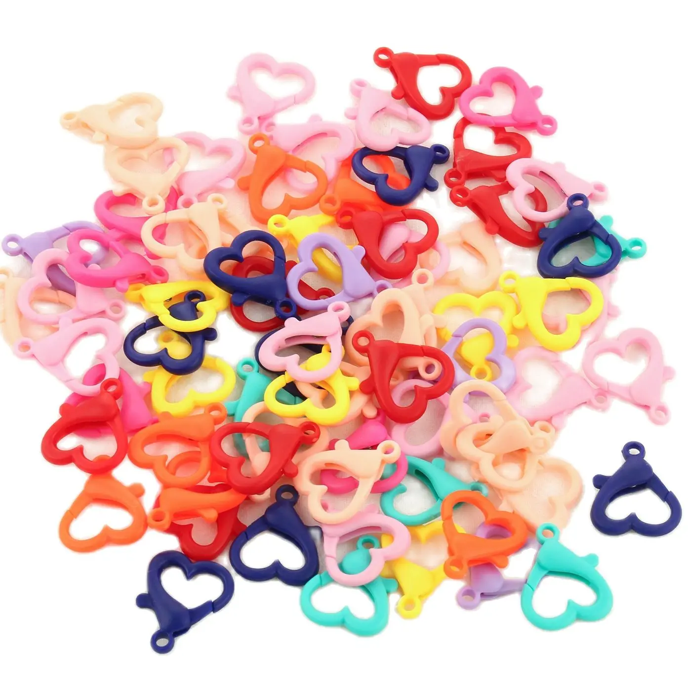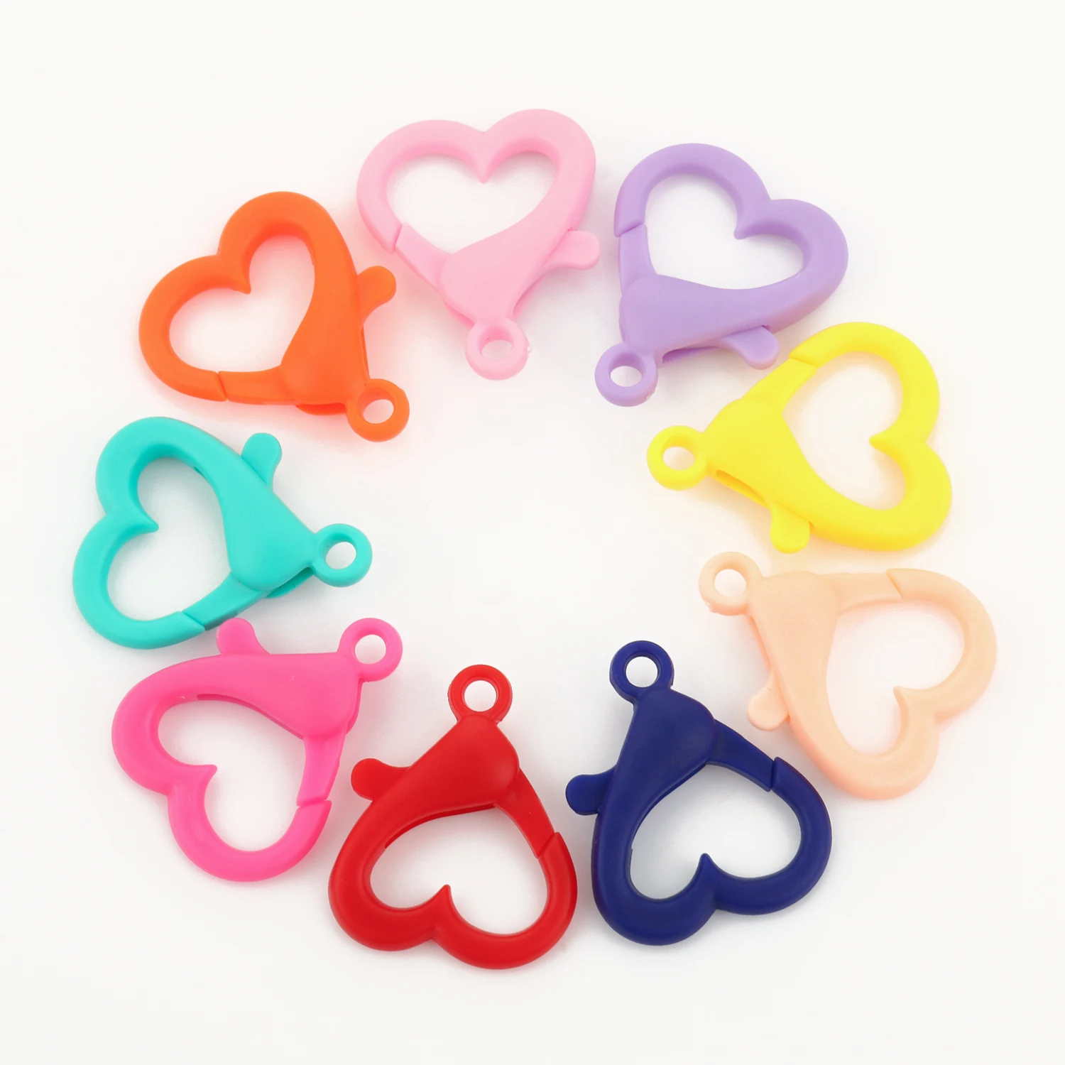 20 шт., смешанные цвета, в форме сердца, пластиковые застежки-крючки для омаров, соединители, Раздельный брелок, аксессуары для цепочки, для самостоятельного изготовления ювелирных изделий