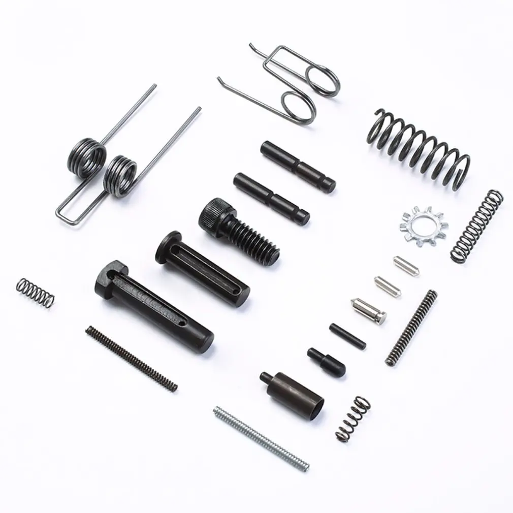 Особенности: 1.Сделано в наивысшей степени Mil-Spec допусков. 2.Изготовлен из термообработанного ordnancЕ сталь. 3.Включает в себя все пружины, булавки, палатки и плунжеры, необходимые для нижней сборки приемника. Описание: Идеально подходит для модернизации существующих компонентов или замены изношенных или сломанных деталей. Каждая отдельная часть гарантированно долговечна, долговечна и надежна для любого пользователя. Характеристики: Цвет: серебристый + черный Материал: углеродистая сталь Посылка включает в себя: 1 шт. * удлинитель (1) 1 шт. * удлинитель (2) 9 шт. * пружина 2 шт. * Поворотная колонка 1 шт. * Винт 7 шт. * запчасти