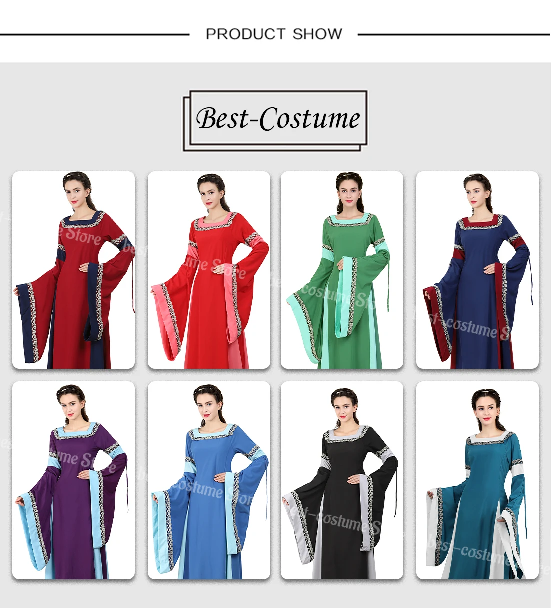 -Средневековое длинное платье Ренессанса для женщин, винтажное маскарадное праздничное платье.
