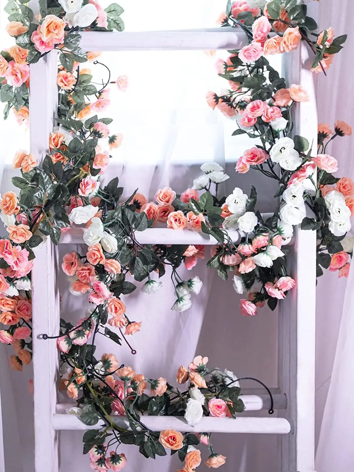 В комплекте 3 упаковки искусственных подвесных цветочных гирлянд. Длина каждой цветочной лозы: 150 см.
