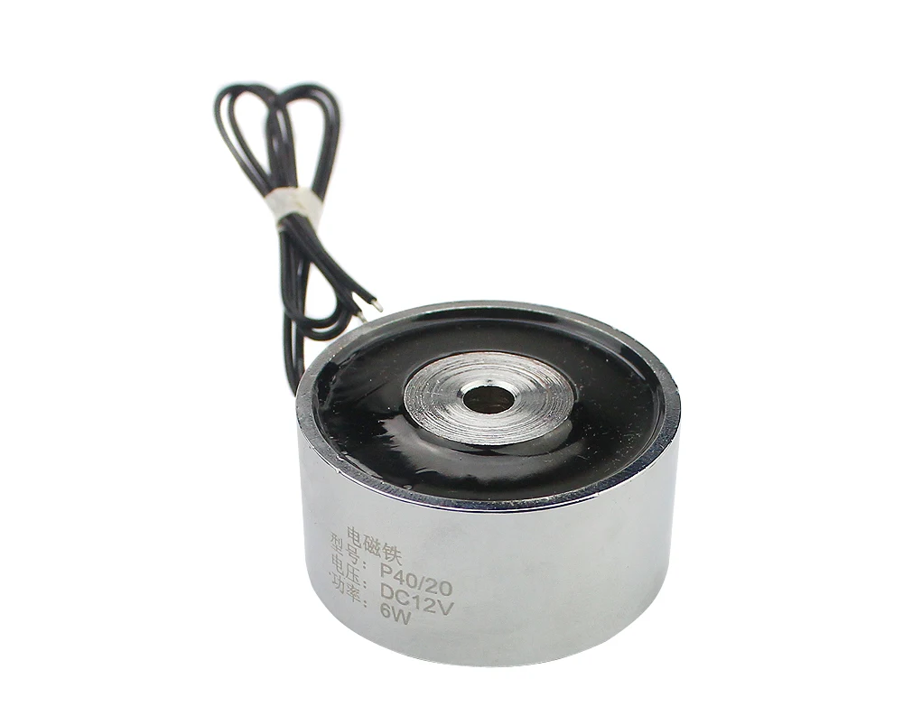 Product parameter:Model:40/20Item:Holding Electric MagnetInput Voltage:DC12V 24V OptionalPower Consumption: 6WHolding FORCE: 35KGmaterial: metalColor: SilveryDiameter: 40 mmCenter Diameter: 18 mmHeight: 20 mmThread size: M6