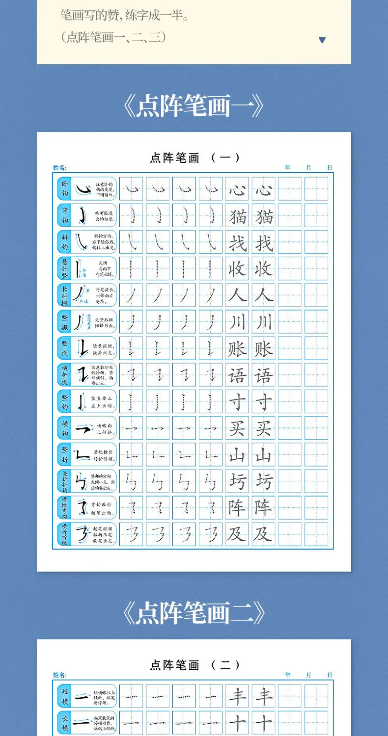 Точечная матрица управления ручка бумага для обучения учеников начальной школы детский сад основные штрихи радикальные радикалы практика script Art