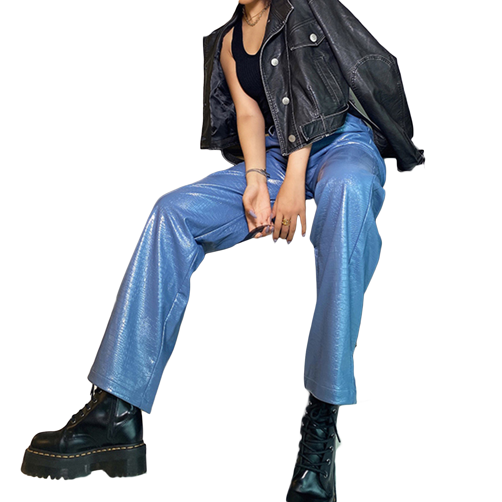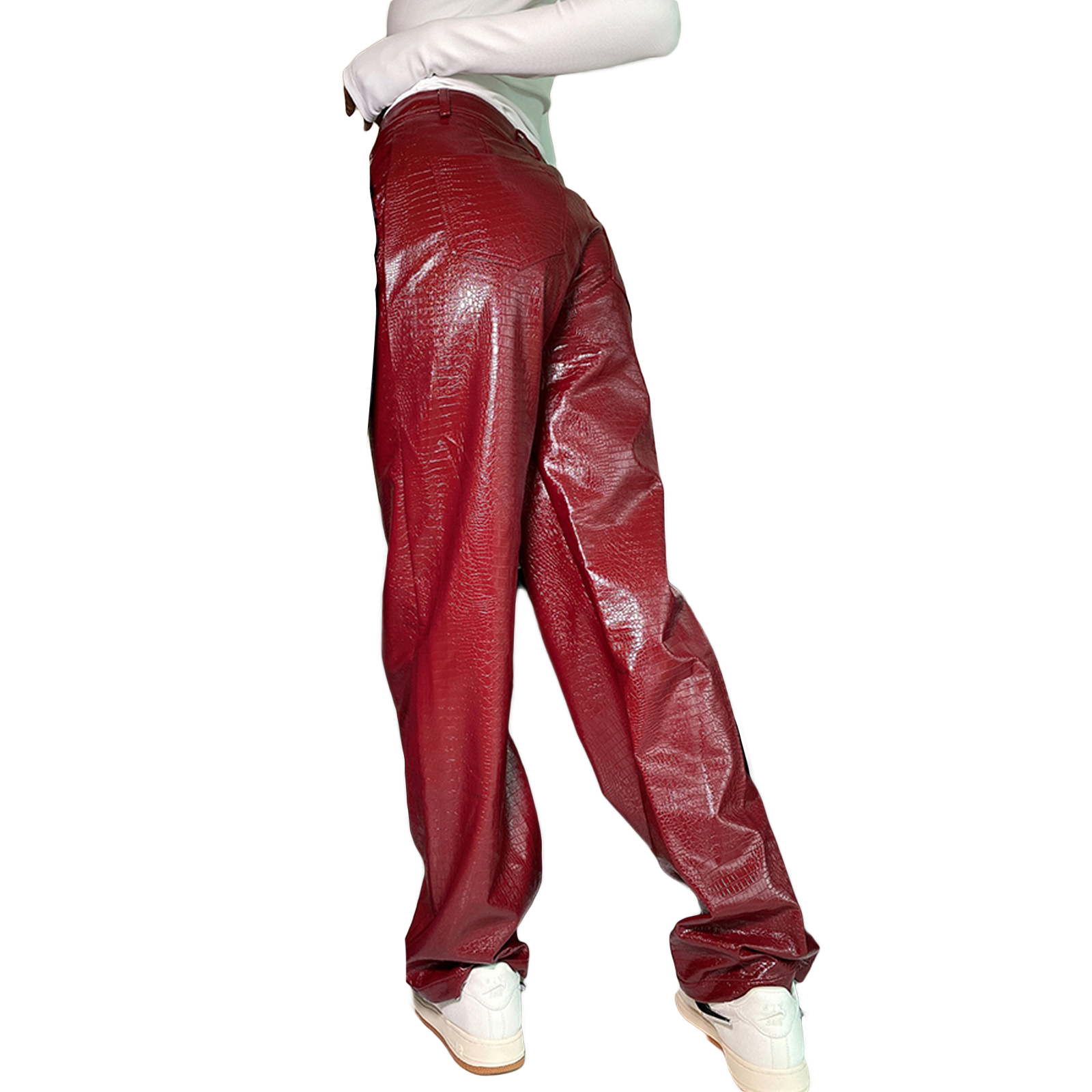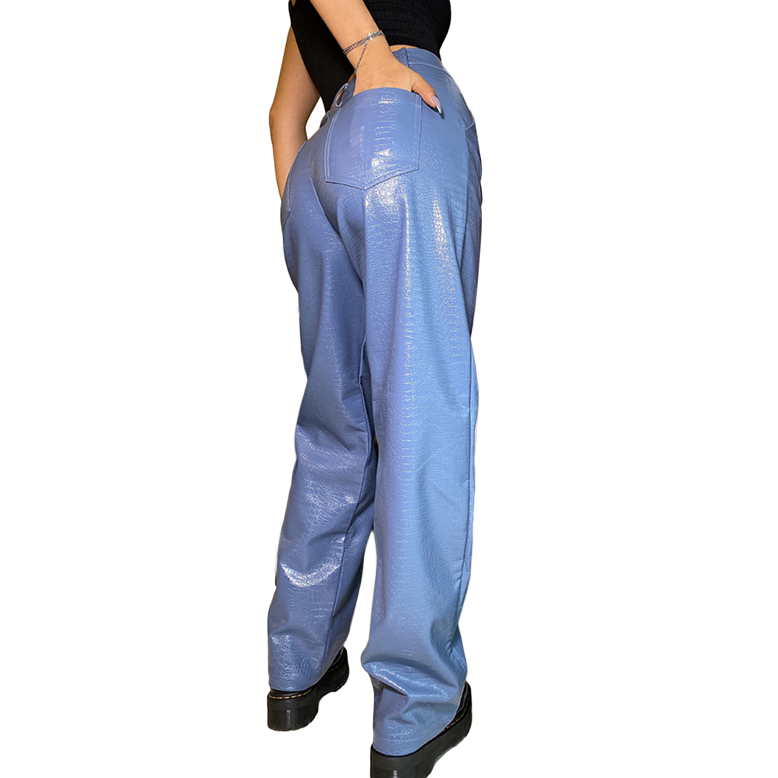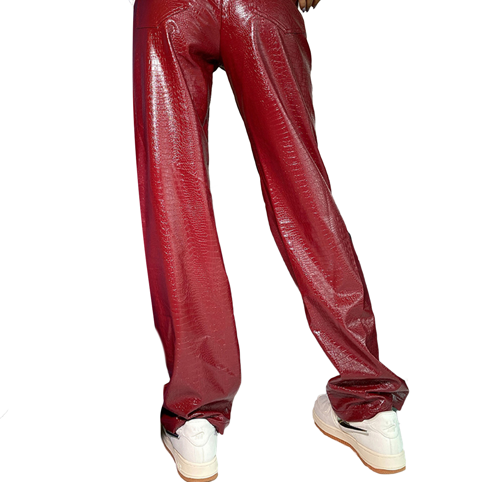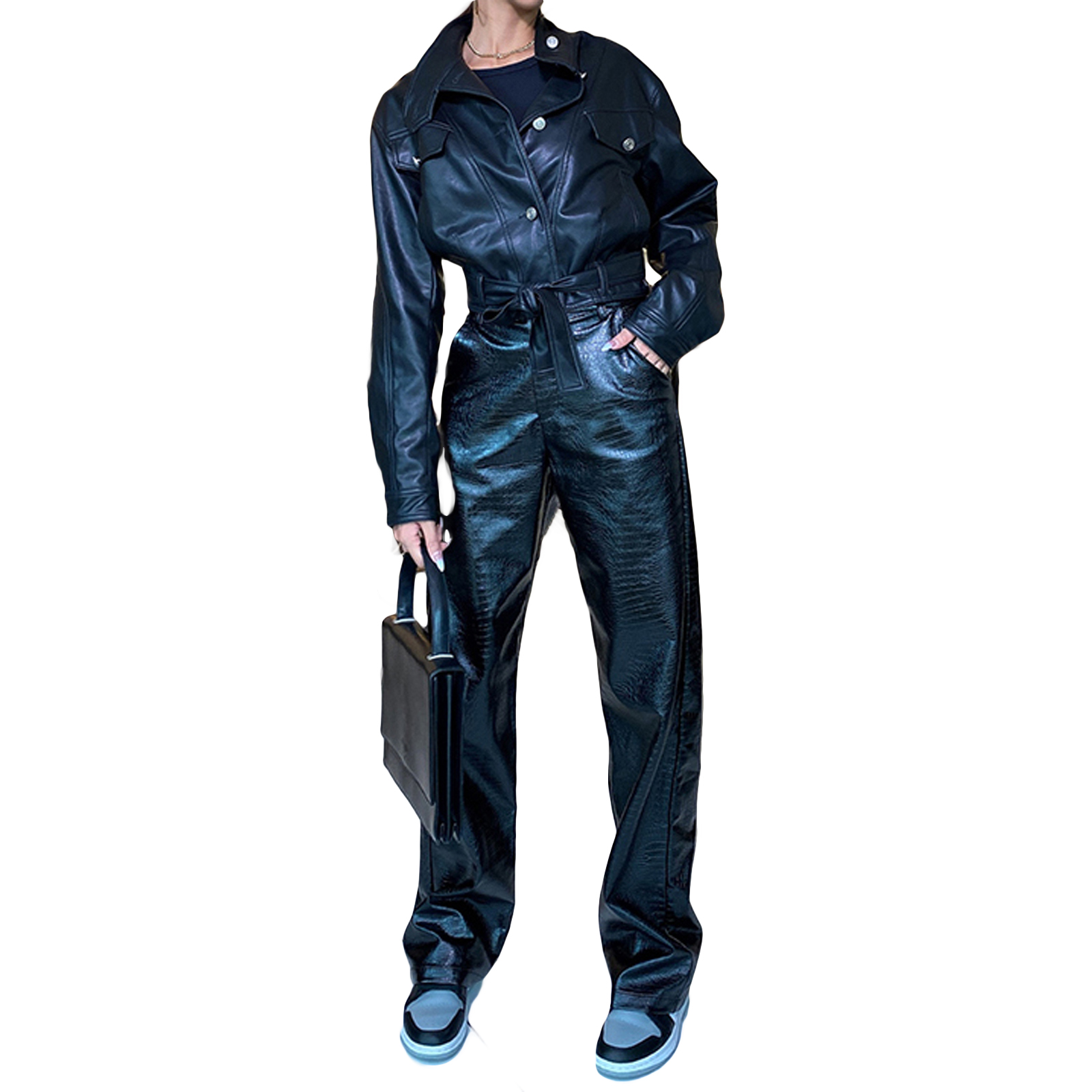 Женские кожаные брюки, с высокой талией и боковыми карманами, свободные прямые Повседневные Вечерние брюки на весну и осень