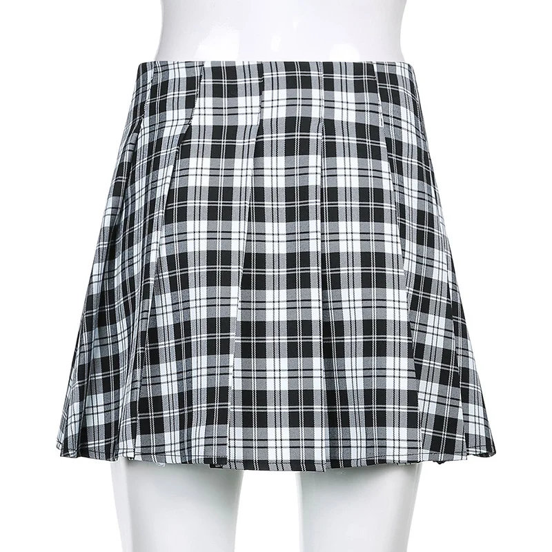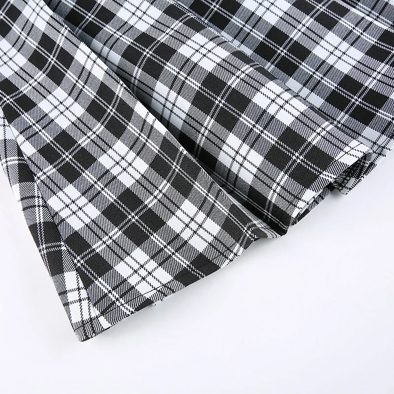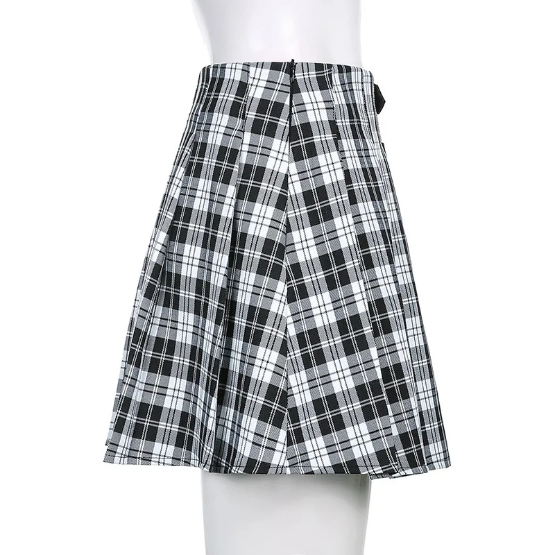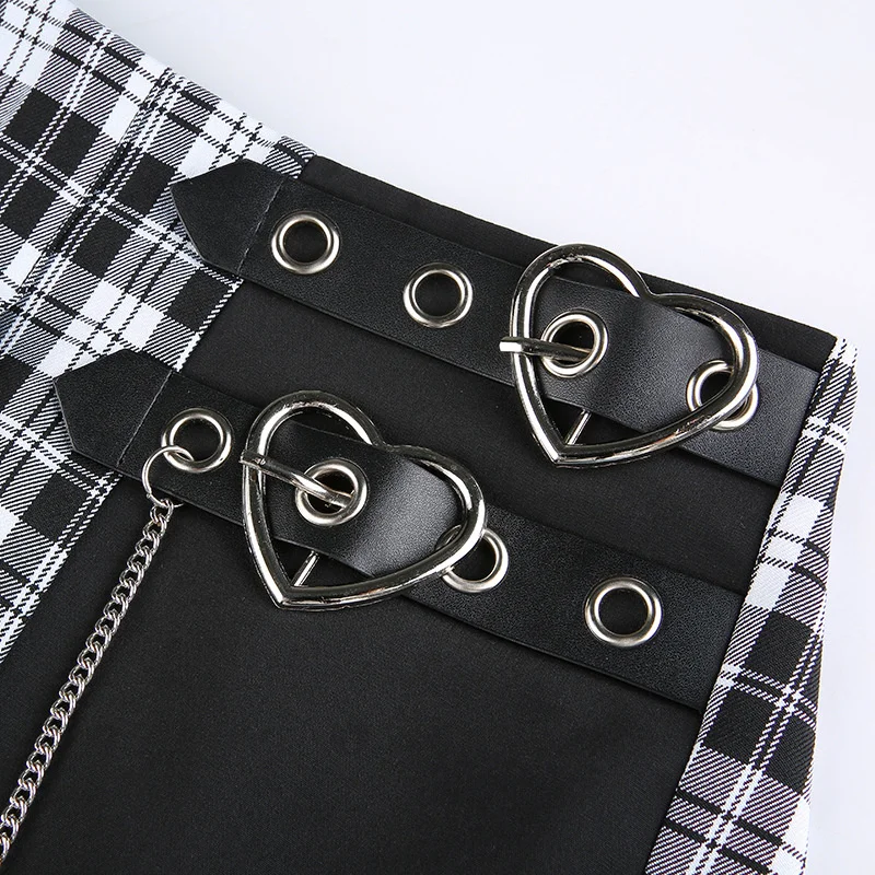 Клетчатая юбка в складку; Готическая обувь в стиле «панк»; С высокой талией, с украшением в виде пряжки и цепочек кружева лоскутное мини черные женские юбки Y2K модные мини-платья трапециевидной формы в уличном стиле