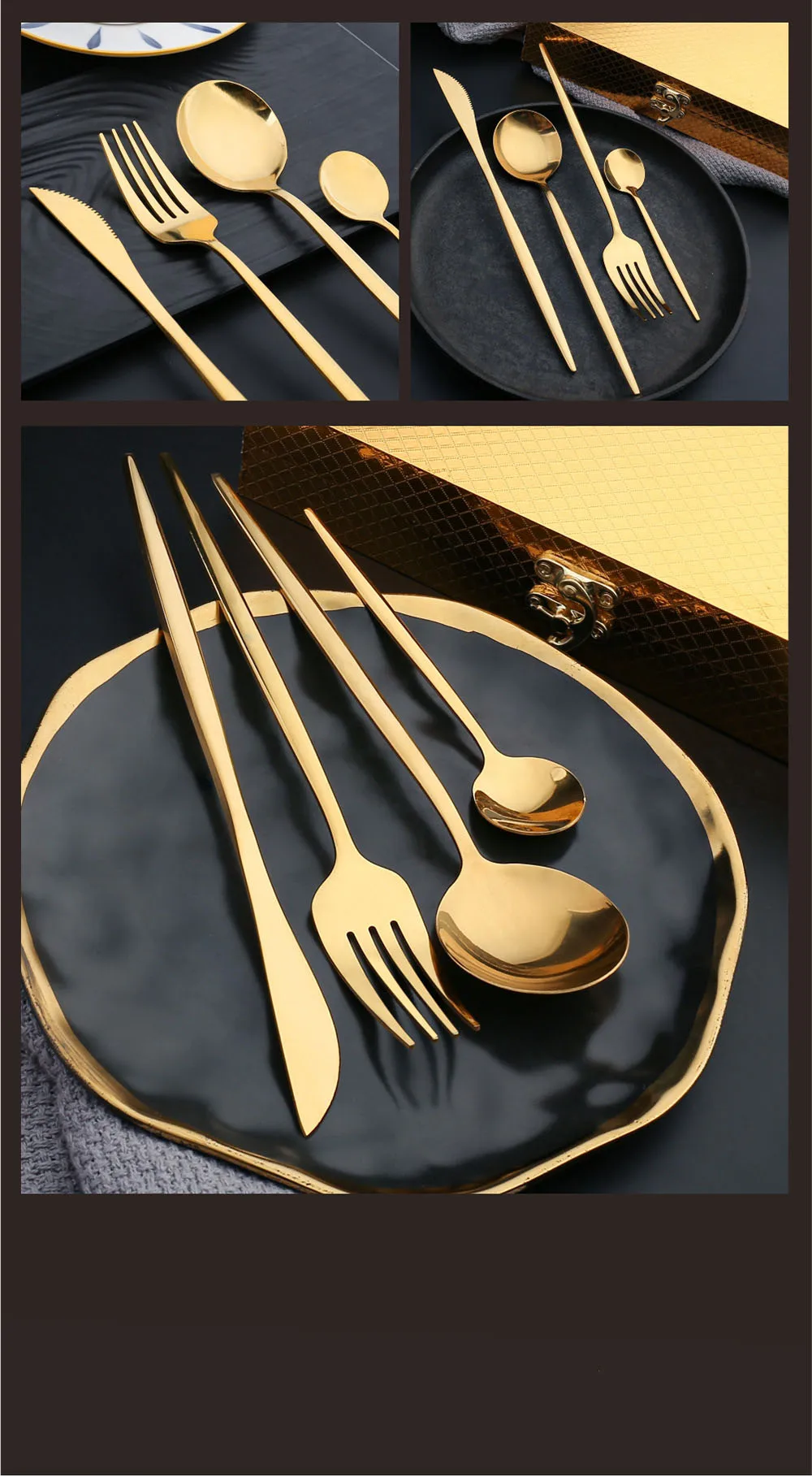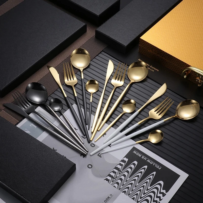 16 шт., европейский стиль, золотой набор столовых приборов из нержавеющей стали, нож для стейка, вилка, ложка, Роскошная Посуда, Подарочная коробка, набор, можно мыть в посудомоечной машине