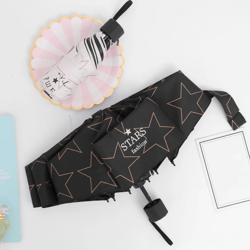 Fashion Umbrella For Women Mini Folding Cartoon Pentagram Star Rainy Umbrellas Pocket Men Anti-UV Light Umbrella