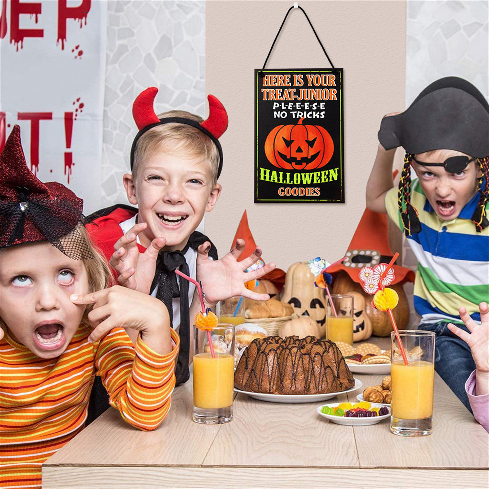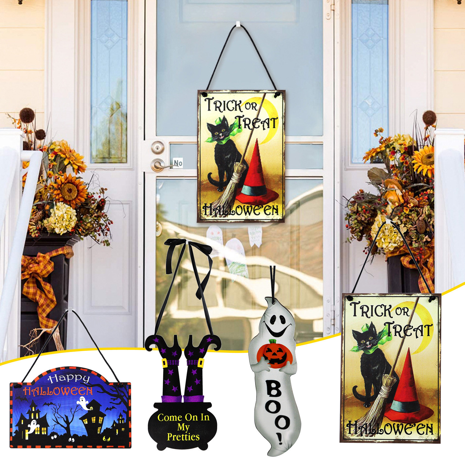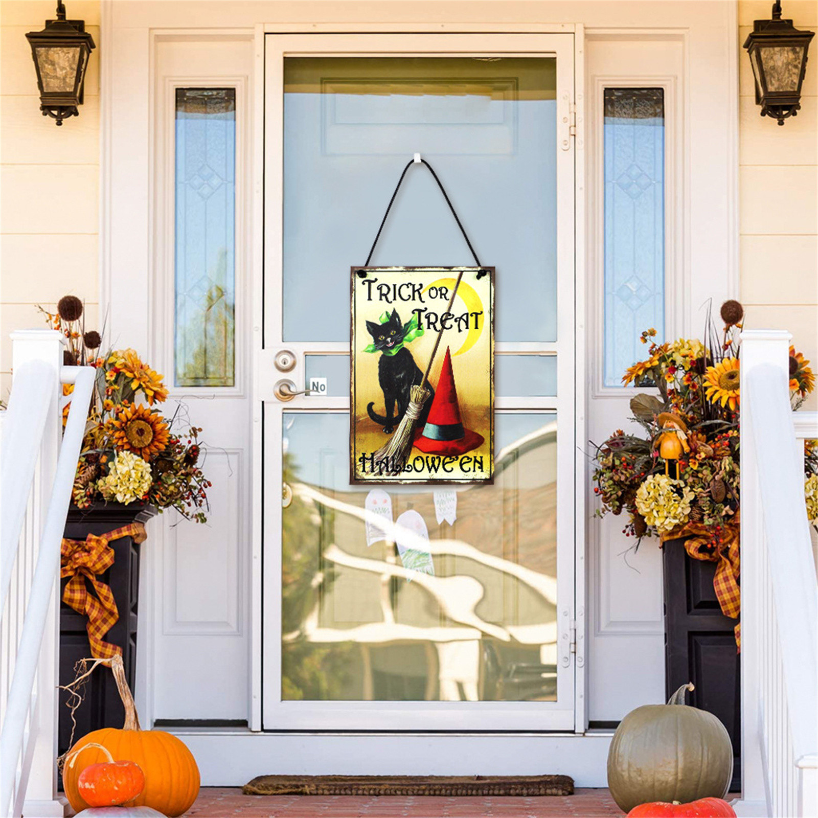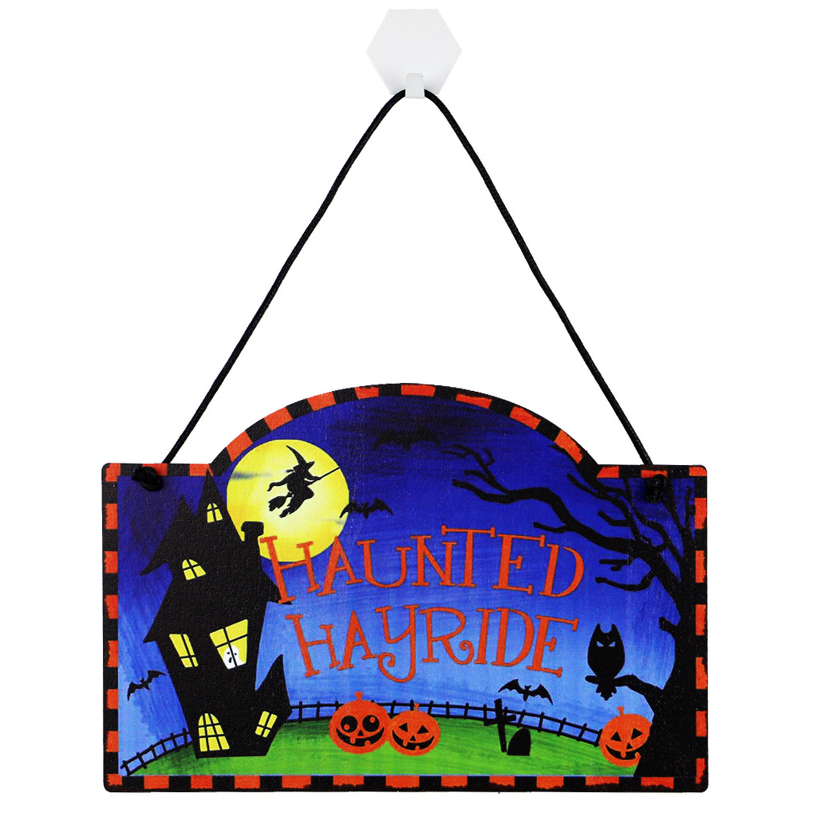 Простота в использовании: подвесной знак на Хэллоуин подходит для украшения многих различных мест, подвесной знак просверлен отверстиями сверху, поэтому вы можете легко продеть ленту через отверстие, чтобы повесить ее