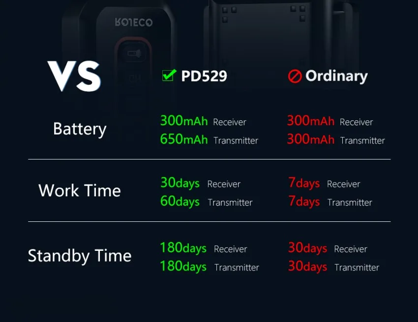 Время работы: воротник приемника 45 дней +, дистанционный передатчик: 90 дней +