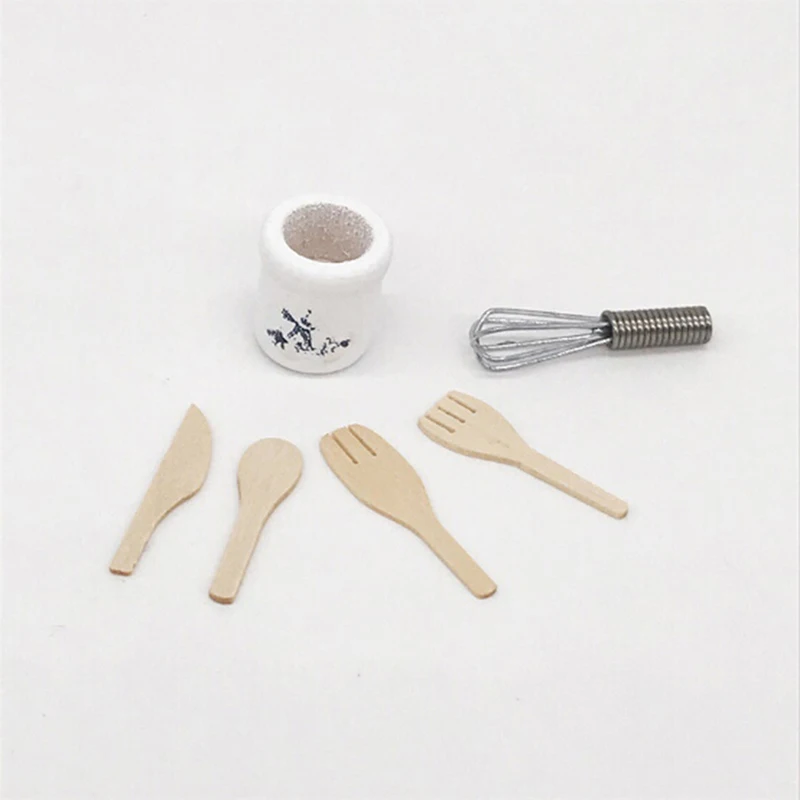В комплект входит: деревянный нож и вилка, металлический венчик и белая банка с ручной росписью
