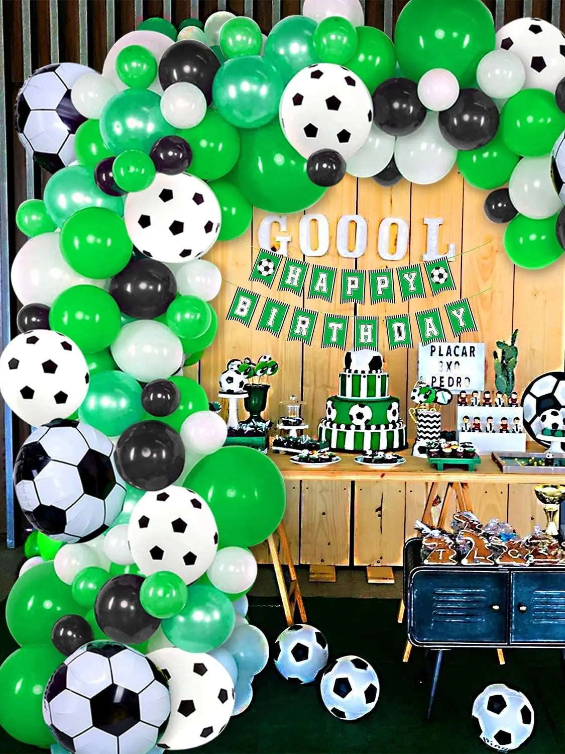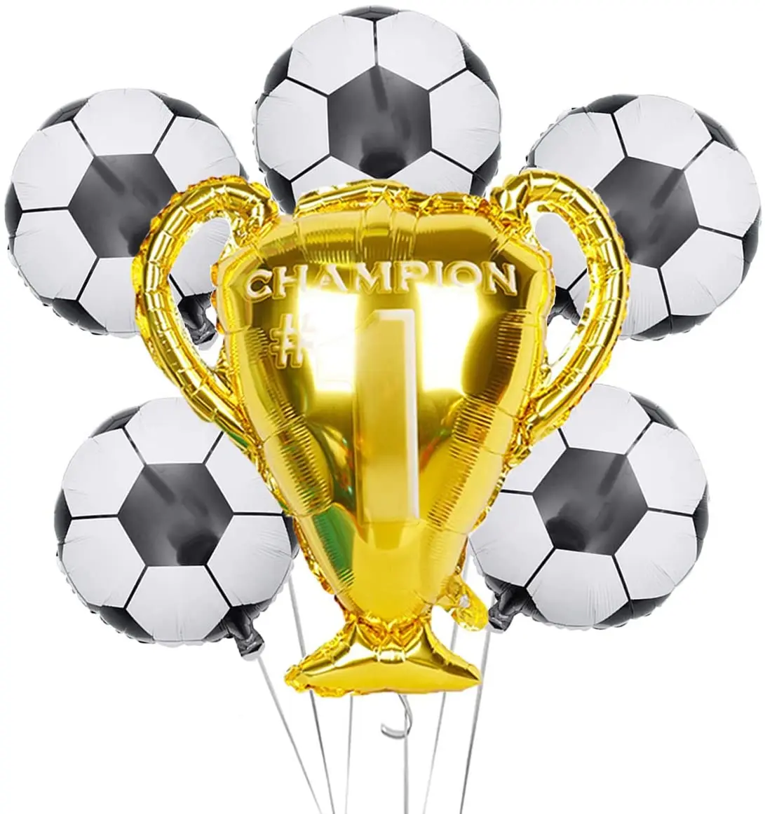 Товары для вечеринки в виде футбольного мяча-эти тематические шары и баннеры имеют разноцветный дизайн с несколькими элементами футбола, печать хорошего качества делает эти украшения для футбольной тематики более привлекательными и новыми, это отличный способ показать свой дух для футбольной тематики.