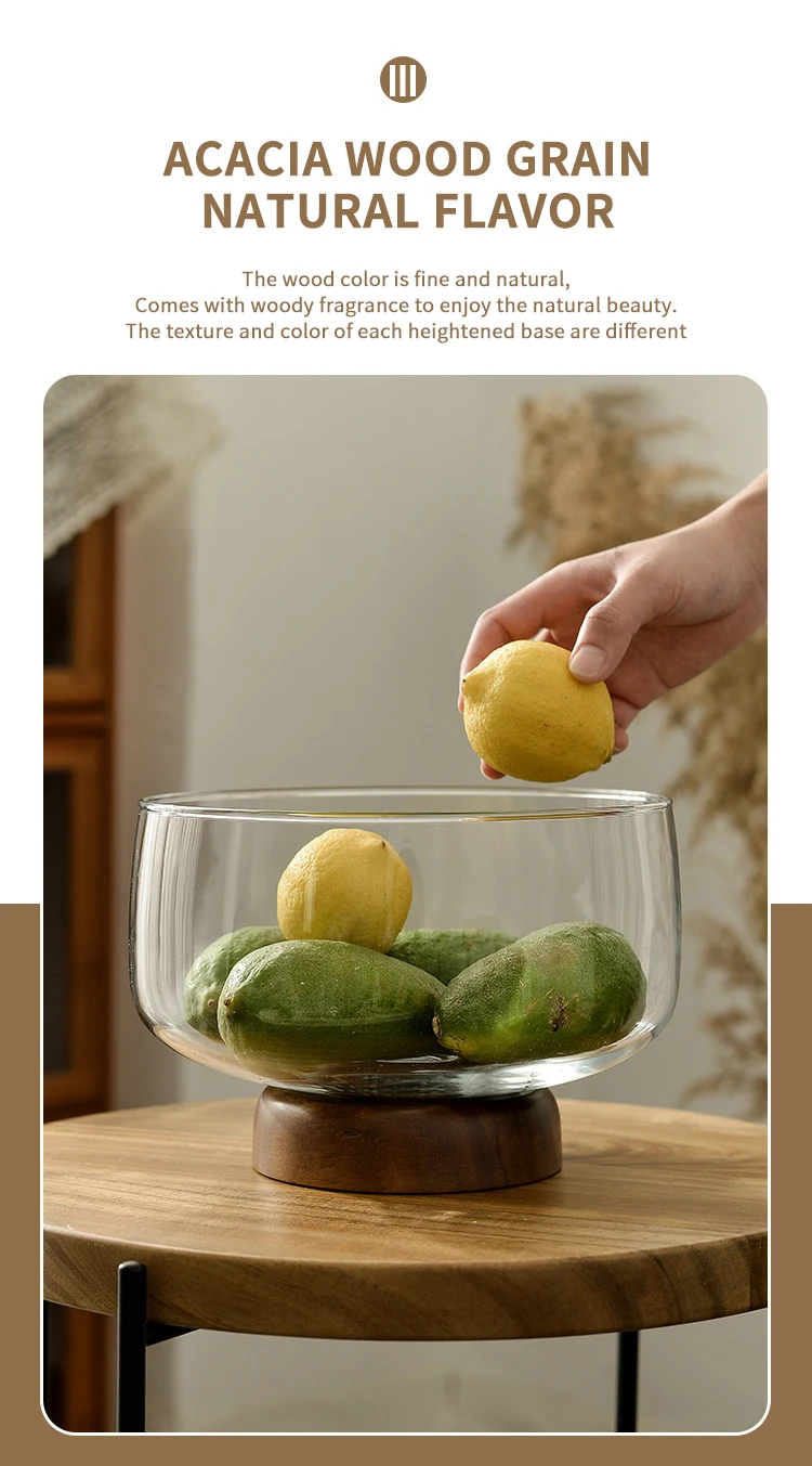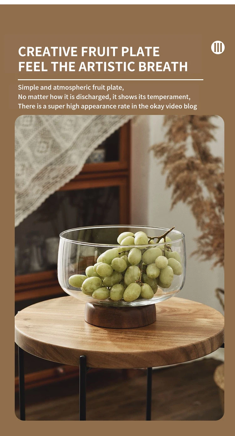 Европейский прозрачный стеклянный деревянный поднос для фруктов, салатник, конфета, десерт, поднос для хранения, журнальный столик, настольные украшения для дома