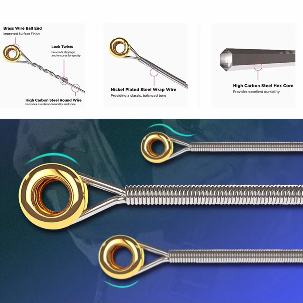 Игральные струны, вся струна выбирает высокое качество изобилие произношения, автоматическая намотка струн производства. Идеальные стальные струны для вашей электрогитары.
