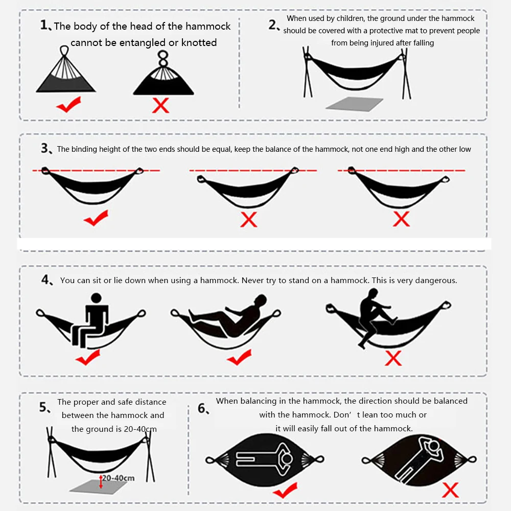 Высокопрочные походные гамаки-веревочные соединения специально плетеные в соответствии с физическими правилами. Каждая веревка имеет одинаковый вес, а гамак достаточно прочный.