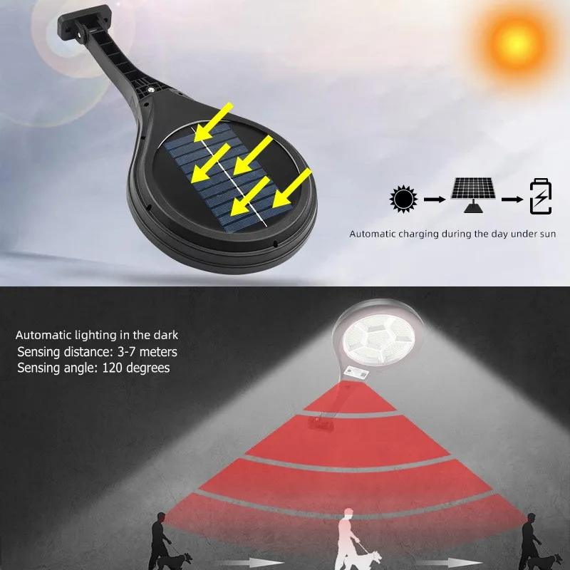 Уличный светильник на солнечной батарее изготовлен из ударопрочного АБС-пластика, который является водонепроницаемым IP65, что позволяет выдерживать различные Погодные условия на открытом воздухе и другие экстремальные погодные условия.