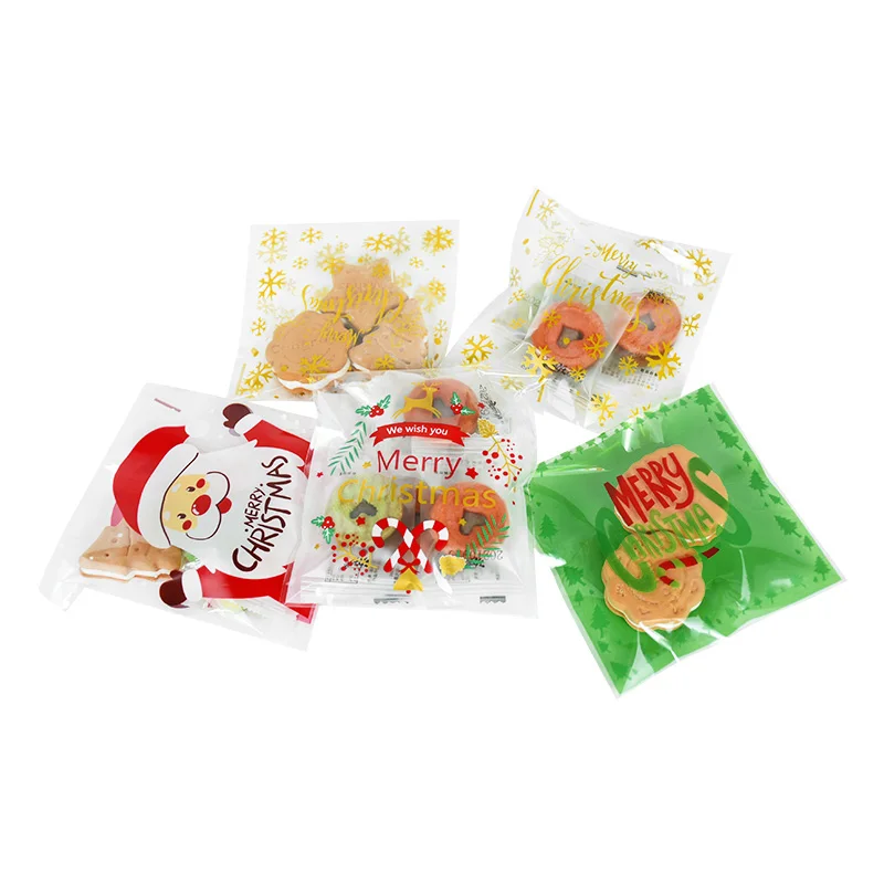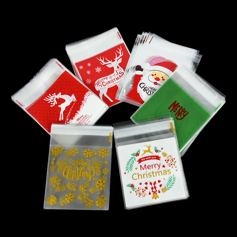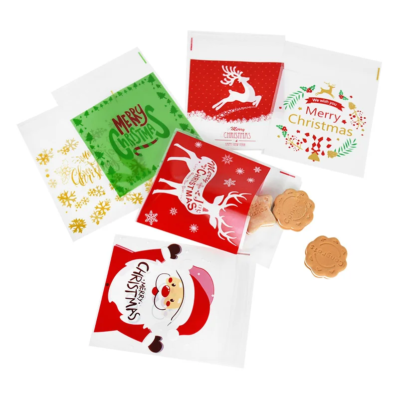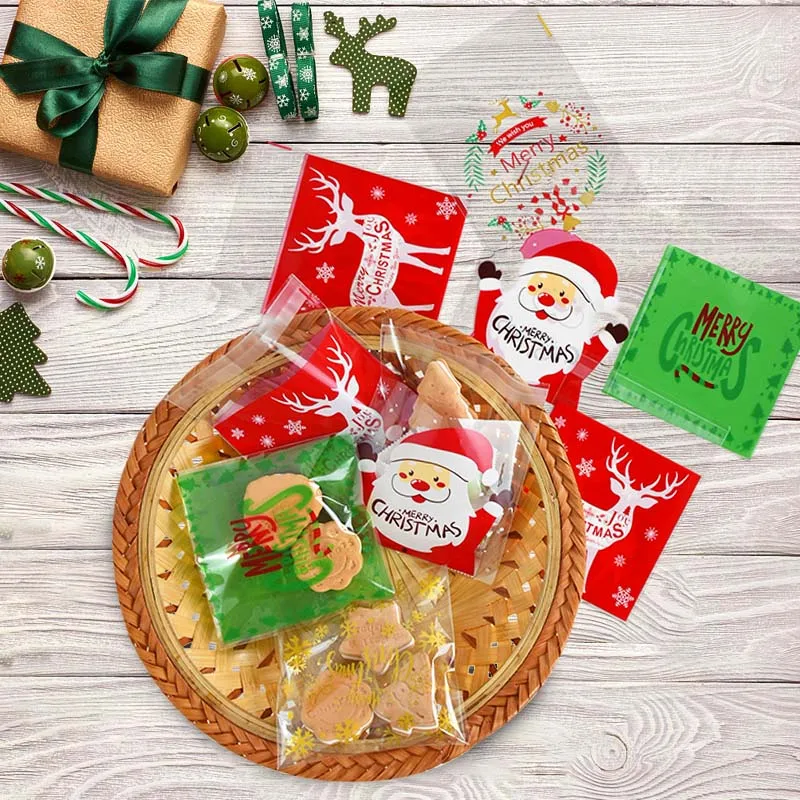 100 шт Рождественский Санта Клаус Конфета в виде снеговика подарочные пакеты самоклеющийся пластиковый упаковочный пакет для печенья вечерние свадебные детские сумки