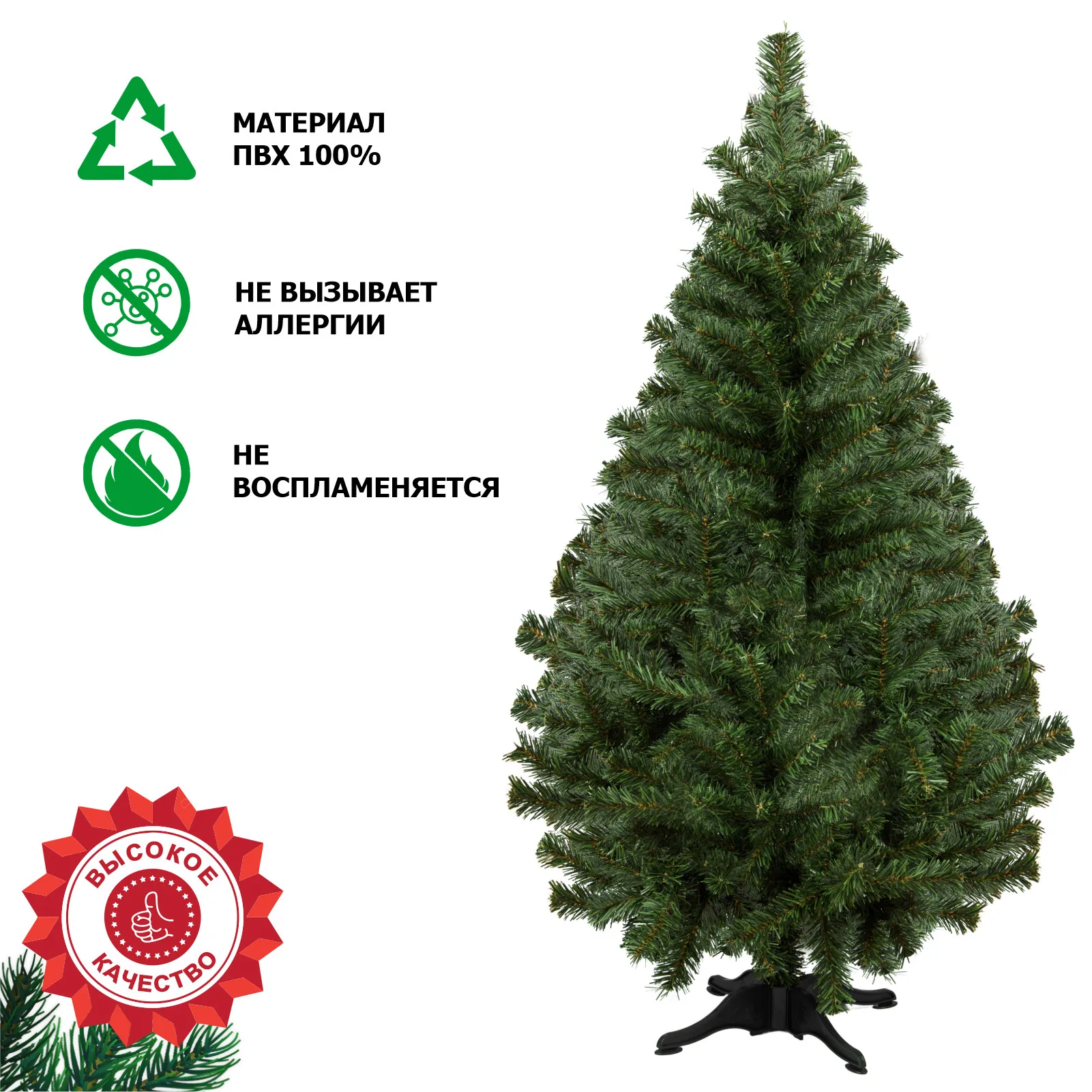 Celebrating the New Year cannot be imagined without a large and elegant Christmas tree! If you are looking for a large and lush green beauty, but do not want to put a live felled fir tree, pay attention to the artificial Christmas tree made of PVC film. A wide green Vyatskaya spruce is what you need for a full New Year celebration.