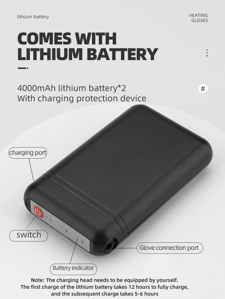 Нагревательный элемент из композитного волокна с питанием от аккумулятора, оптимально помещается в руку для быстрого разогрева и равномерного распределения тепла по руке и пальцам.