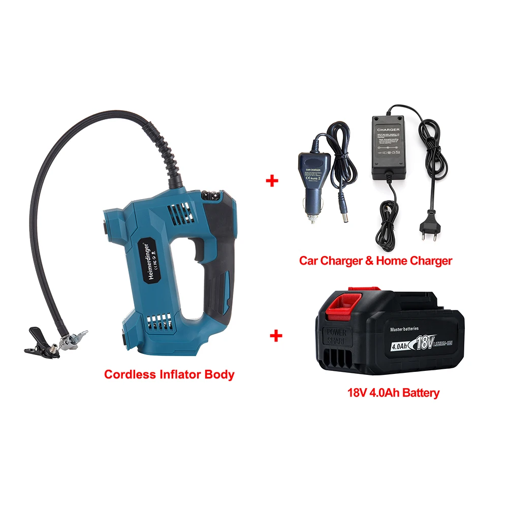 18 volt lithium battery powered cordless Electric air pump electric inflator with car charger