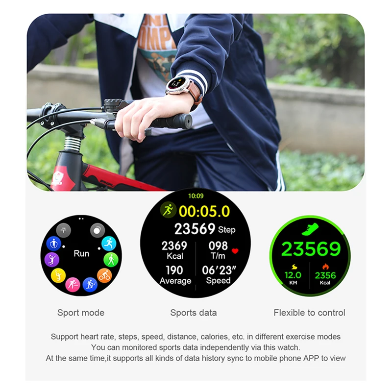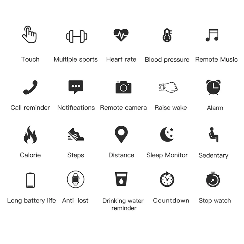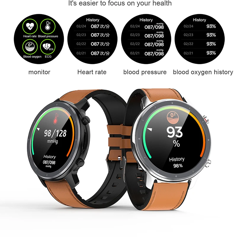 Main functions: heart rate, ECG, blood pressure, blood oxygen monitor, pedometer, stopwatch, music control, Bluetooth camera.