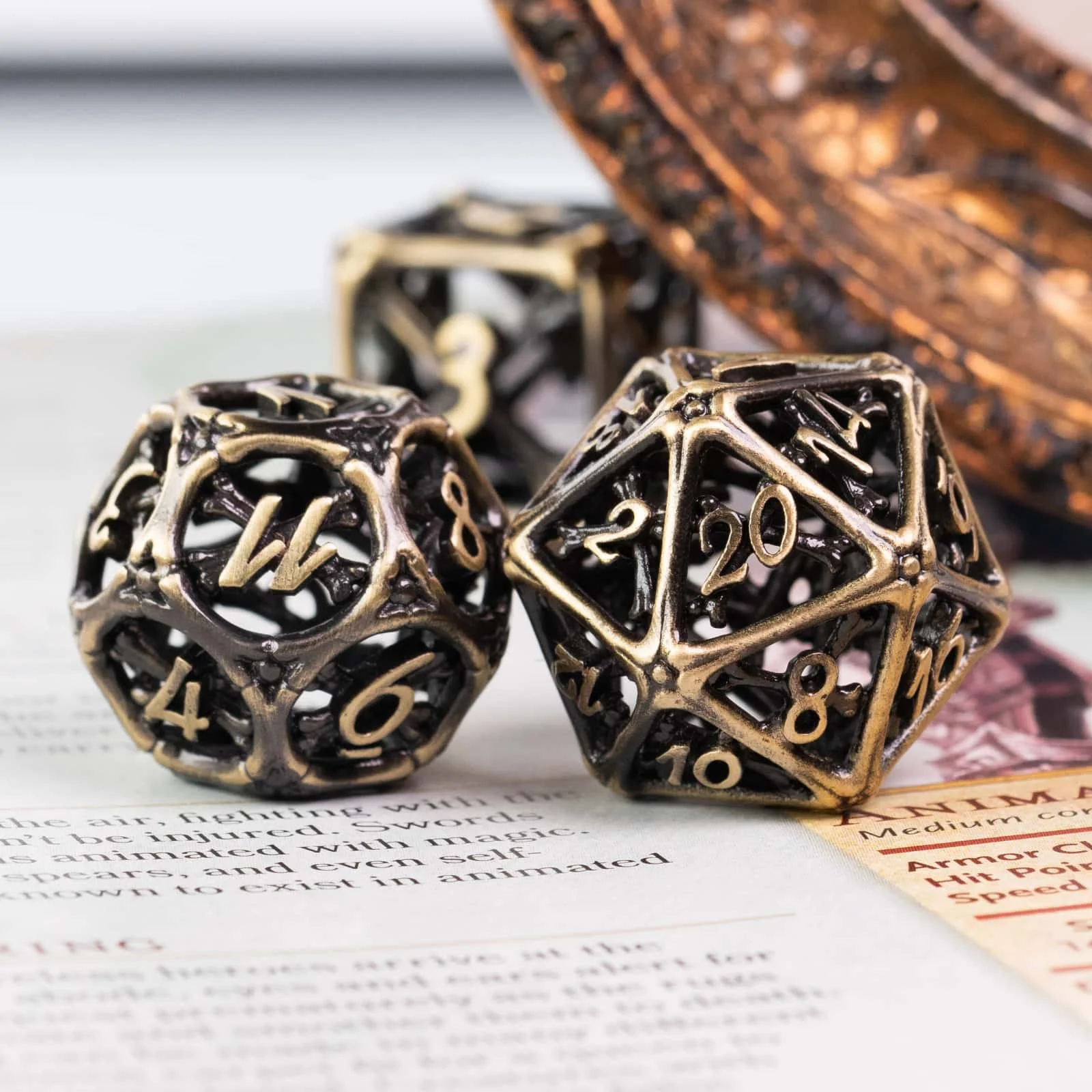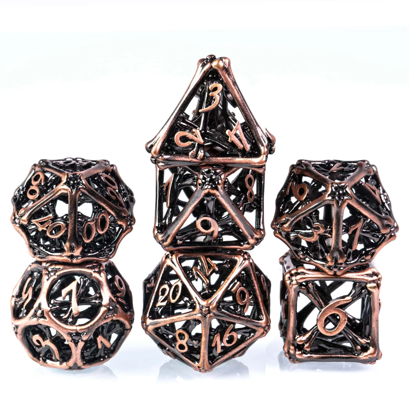 Это полный набор металлических костей, включая D4, D6, D8, D10, D12, D20 и D %.