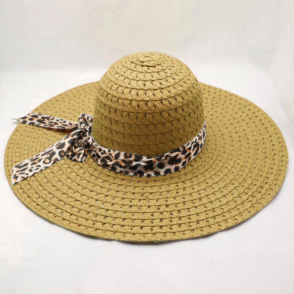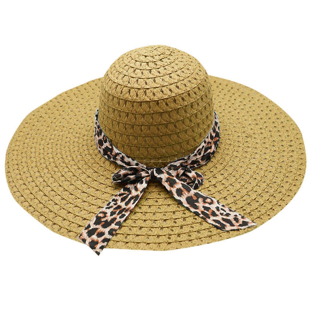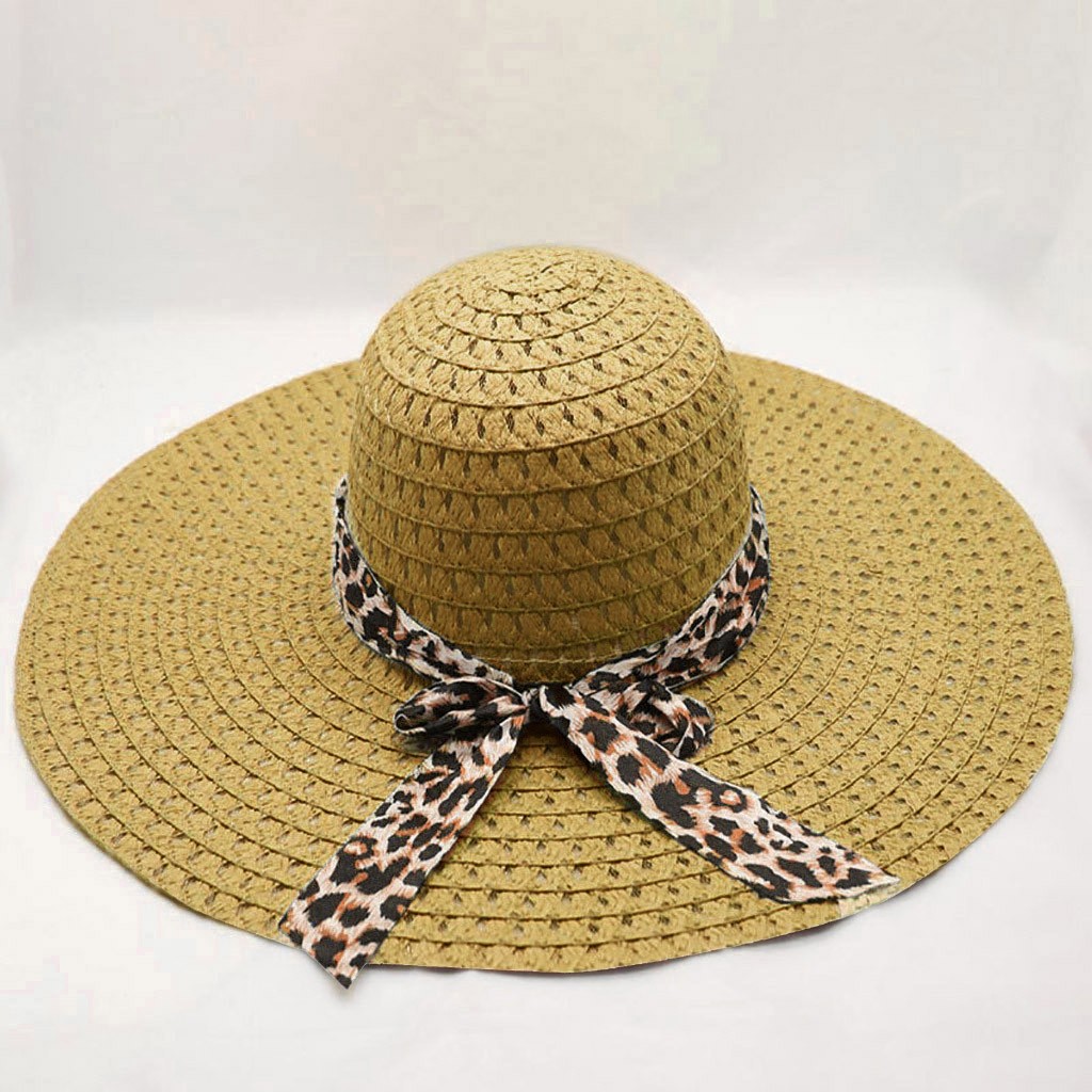 Женская соломенная шляпа с леопардовым принтом, широкополая шляпа от солнца с широкими полями