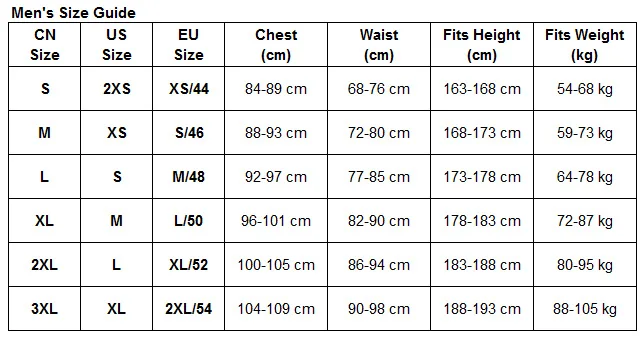 Men's Size Guide: