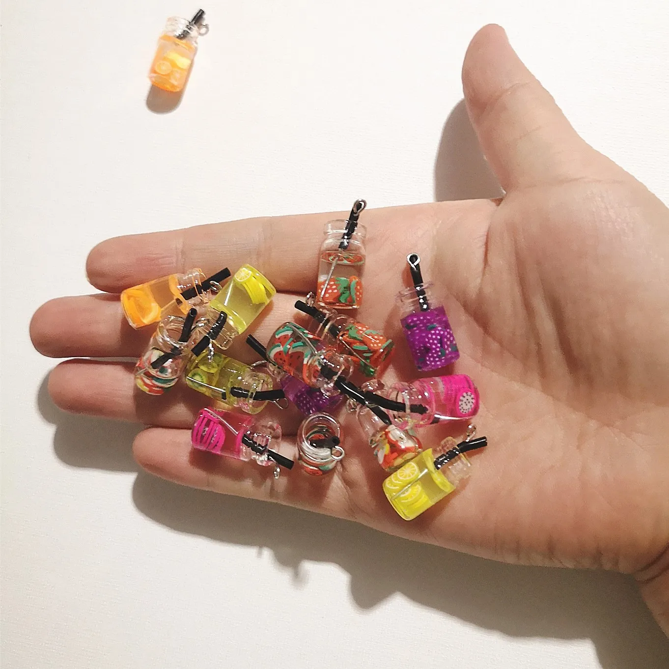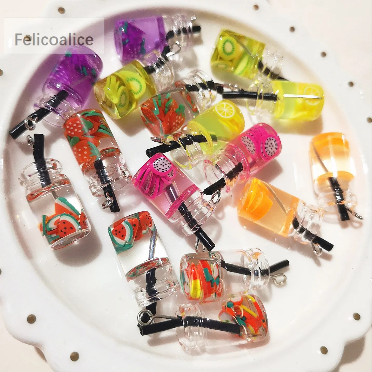 8pcs Fruit Orange Apple Strawberry Lemon Juice Miniature Food Charms Pendants For DIY Keychain Necklace Earring Accessories