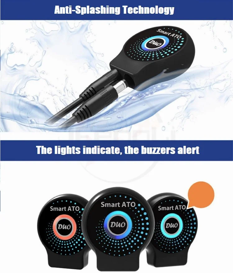 Светодиодный может привести к тому, что Micro АТО иметь тревоги обнаружения уровня воды, поэтому не датчик крепления близко к любому яркий светильник источника, включая луна светильник s, когда срабатывает сигнализация проверить уровень резервуара, проверьте наличие пузырьков на сенсоре, перемещайте датчик в темное место в отстойнике или аквариуме.