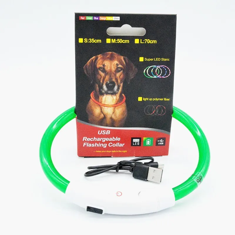 Ошейник для собаки, светящаяся лампа для собаки, светящаяся лампа для собаки, светящаяся в темноте, заряжаемая от USB, светодиодная мигающая светящаяся лампа с бусинами