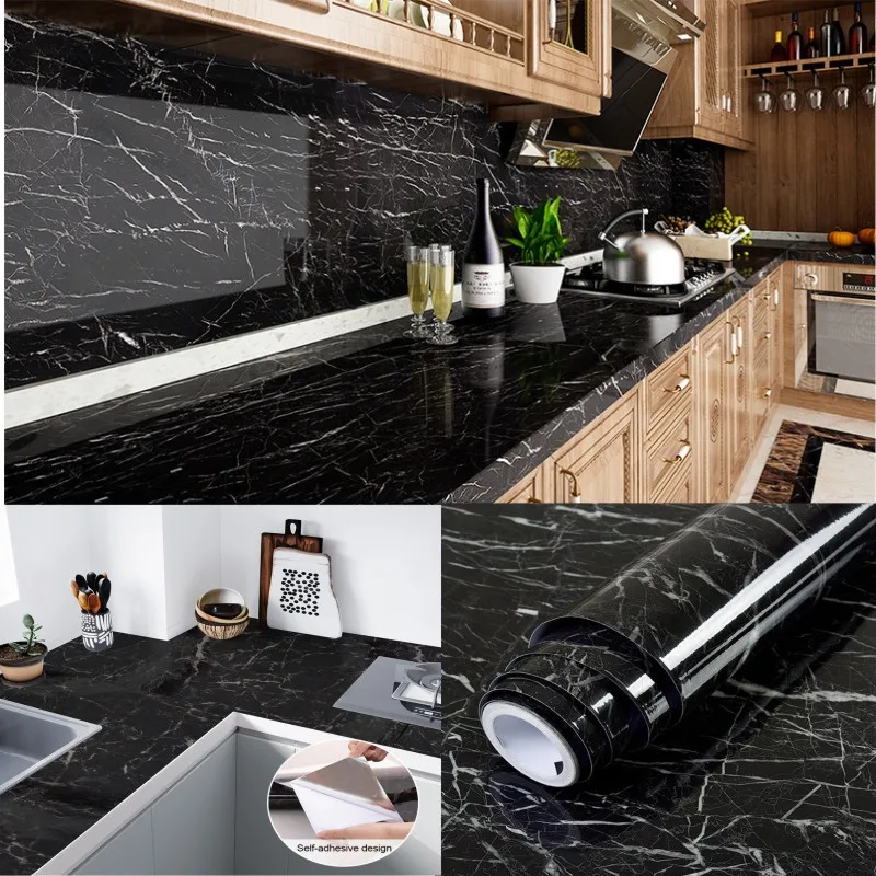 Самоклеющиеся и толстые: черная мраморная самоклеящаяся виниловая бумага, Оторвите клейкую подкладку и приклейте к любой сухой плоской поверхности. Материал ПВХ, гладкая поверхность, вода, масло, пыль, влага, легко моется, самоклеящаяся (не требует дополнительного клея).