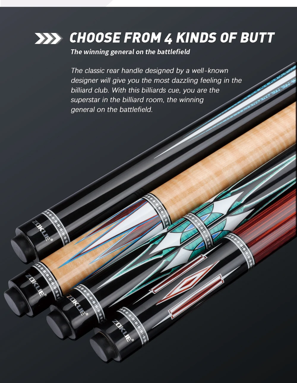 6. Классическая Задняя ручка, разработанная известным дизайнером, подарит вам самое ослепительное ощущение в бильярдном клубе. С этим бильярдным кием вы являетесь суперзвездой в бильярдной, победителем генерала на поле битвы.