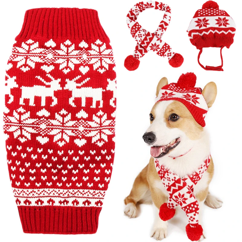 Особенности: очень мягкий и теплый свитер для домашних животных на Рождество, осень, зиму.