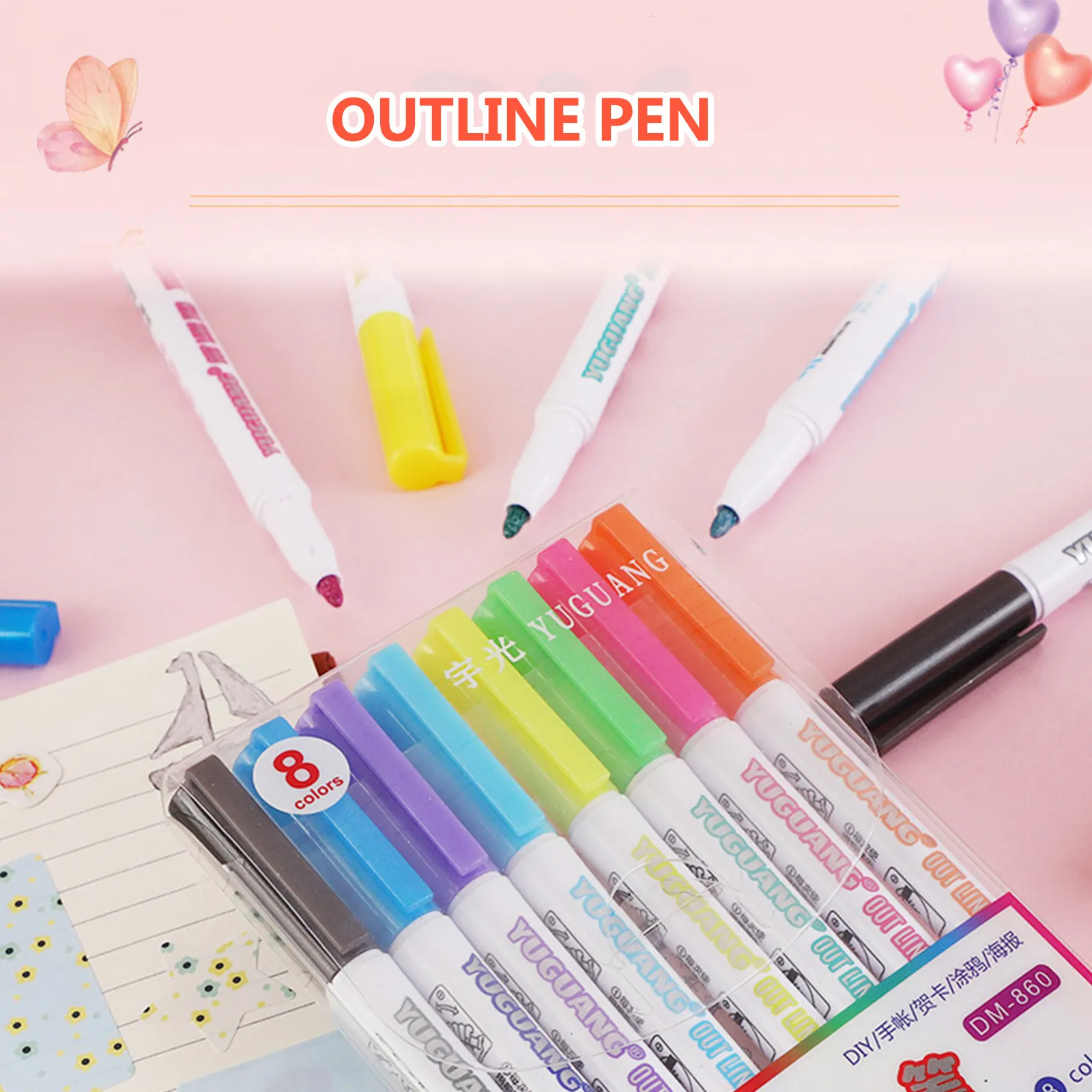 Двойная линия контурная Ручка Двойная линия ручка Мечта Цвет хайлайтер ручка 8 цветов