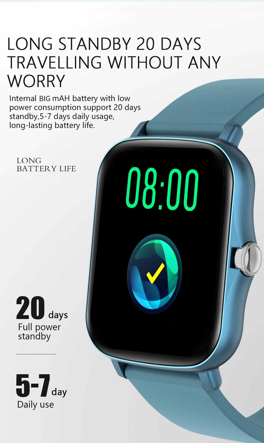 Срок службы 6-8 дней использования, 20 дней в режиме ожидания