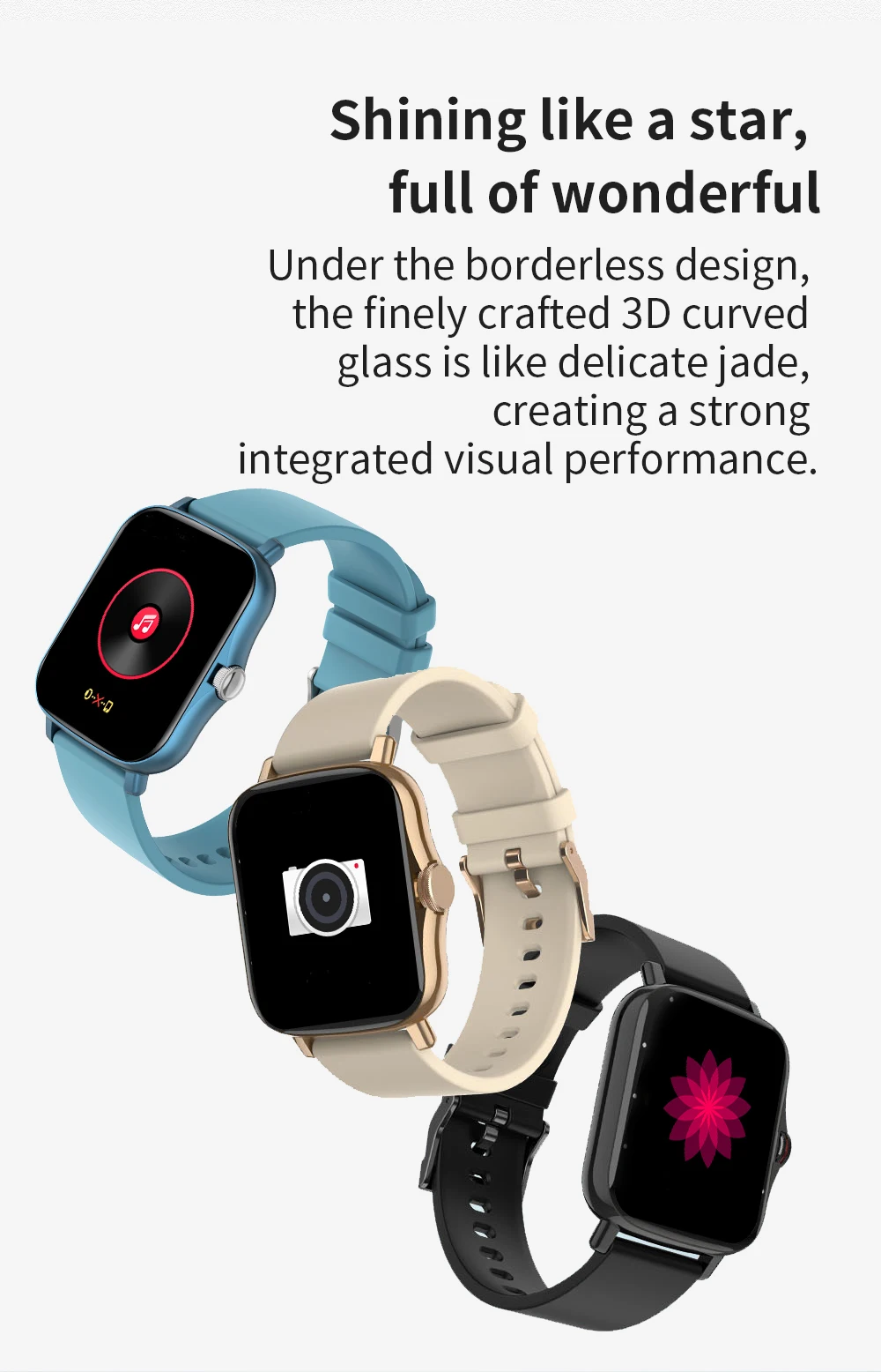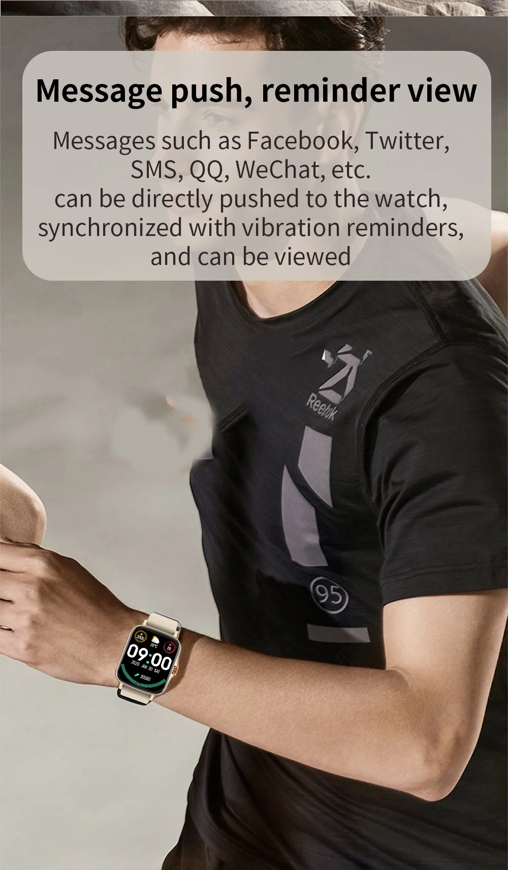 Выбор циферблата, push сообщения, ежедневный будильник, управление камерой, информация о погоде, WeChat sports